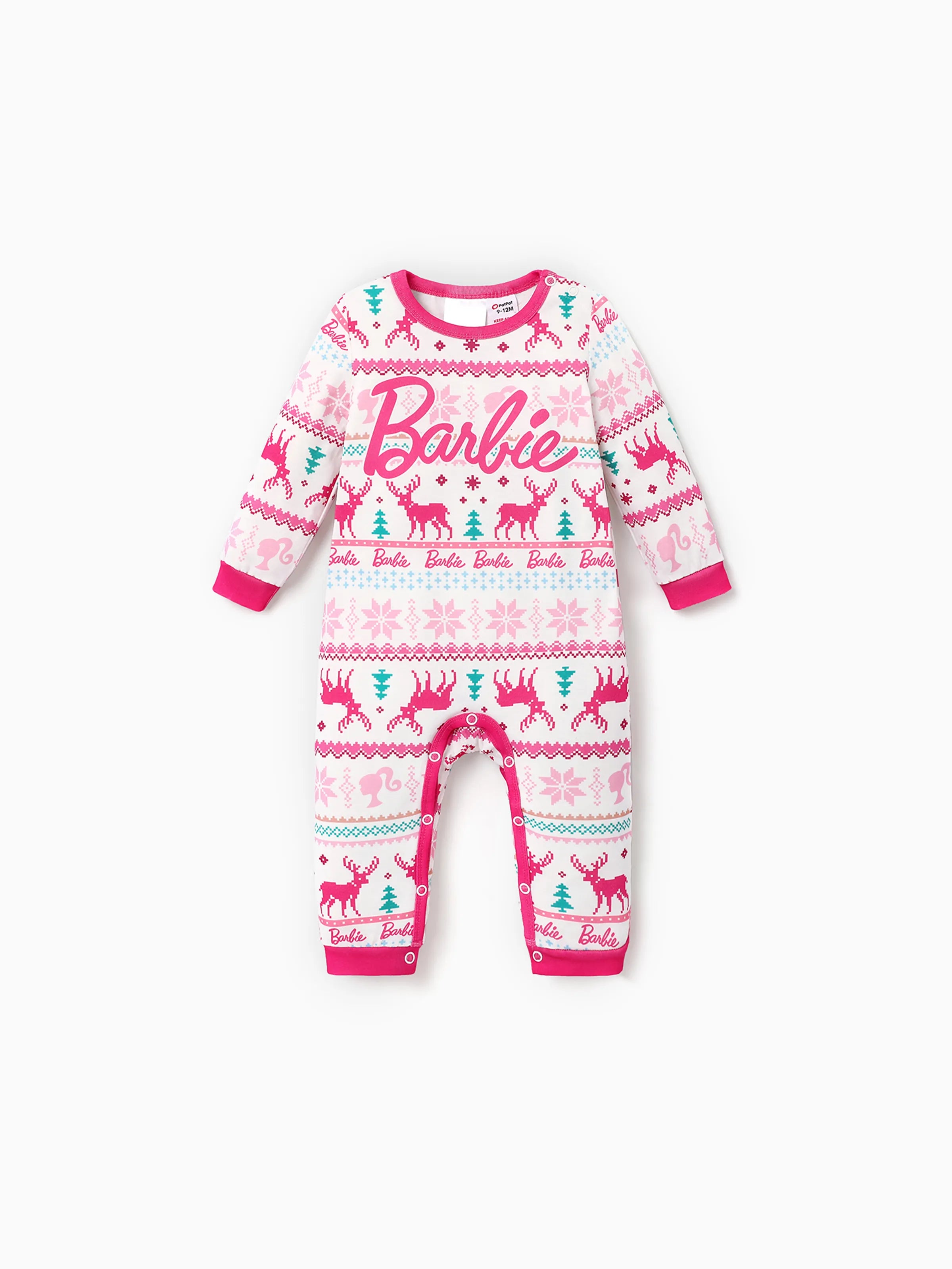 Barbie Mommy and Me Christmas Snowflake Deer Pattern Print Pajamas Sets with Christmas Socks
