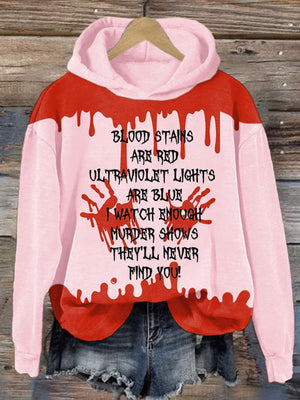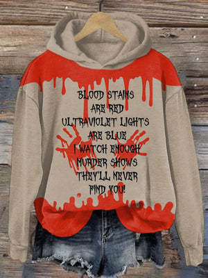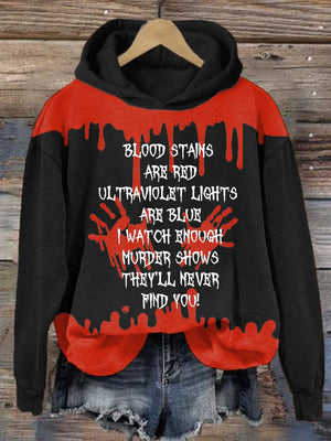 Bloosd Stains Are Red Ul Traviolet Lights Are Blue I Watch Enough Murder Shows They'Ll Never Find You Halloween Women'S Printed Casual Long-Sleeved Sweatshirt