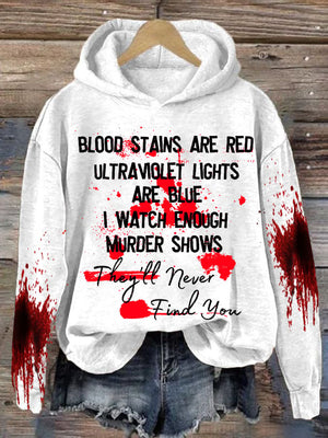 Bloosd Stains Are Red Ul Traviolet Lights Are Blue I Watch Enough Murder Shows They'Ll Never Find You Halloween Women'S Printed Casual Long-Sleeved Sweatshirt