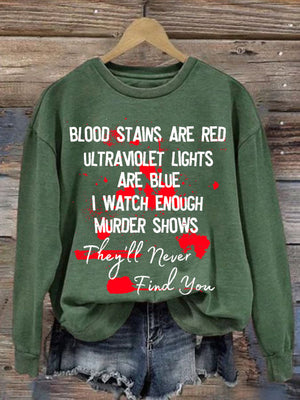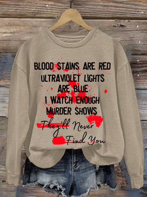 Bloosd Stains Are Red Ul Traviolet Lights Are Blue I Watch Enough Murder Shows They'Ll Never Find You Halloween Women'S Printed Casual Long-Sleeved Sweatshirt