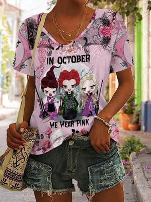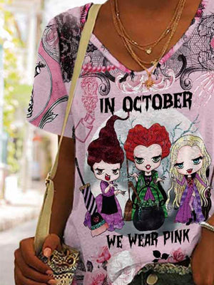 Breast Cancer Awareness Halloween Sisters In October We Wear Pink Print T-Shirt