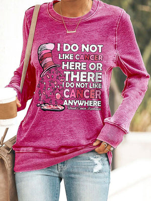 Breast Cancer Awareness I Do Not Like Cancer Here Or There I Do Not Like Cancer Anywhere Print Sweatshirt