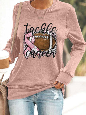 Breast Cancer Awareness Tackle Cancer Football Leopard Print Sweatshirt
