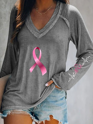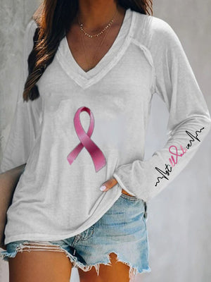 Breast Cancer Still Alive V Neck Long Sleeve Casual T-Shirt