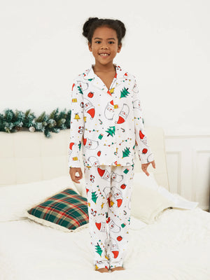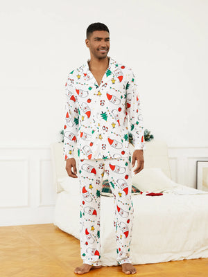 Christmas Family Matching Colorful Festival Theme Print Long Sleeve Pajamas Sets with Christmas Socks White