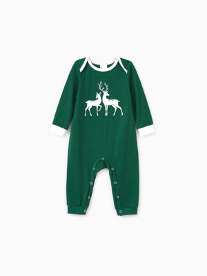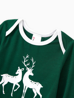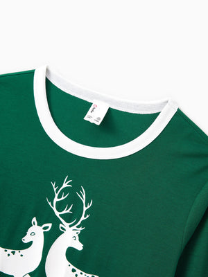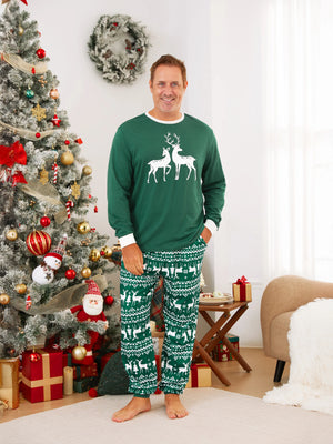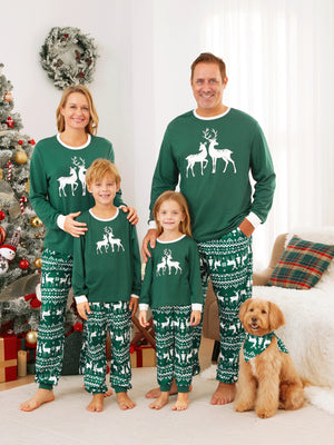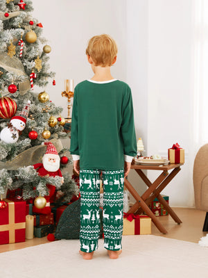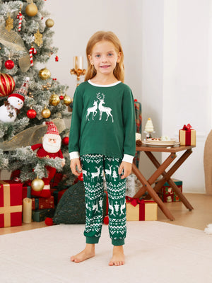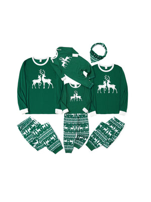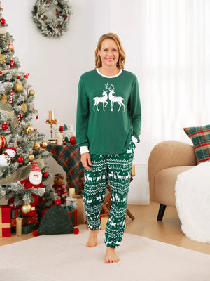 Christmas Family Matching Glow in the Dark Reindeer Tops Allover Pattern Pants Pajamas Sets with Christmas Socks blackishgreen