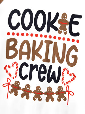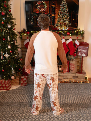 Christmas Family Matching Letter and Gingerbread Man Print Long-sleeve Pajamas Sets with Christmas Socks Khaki