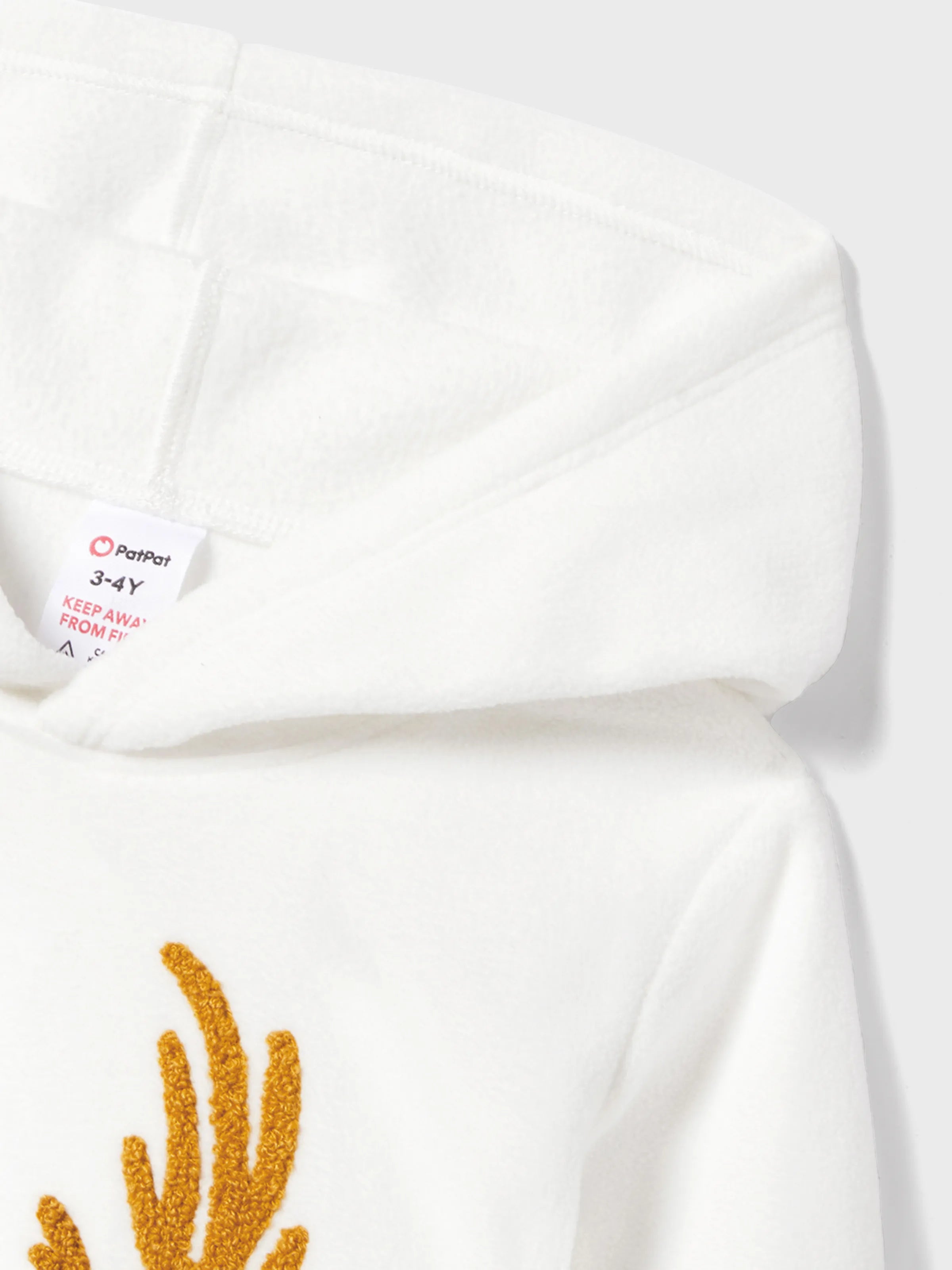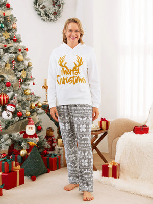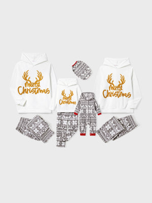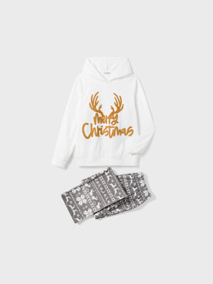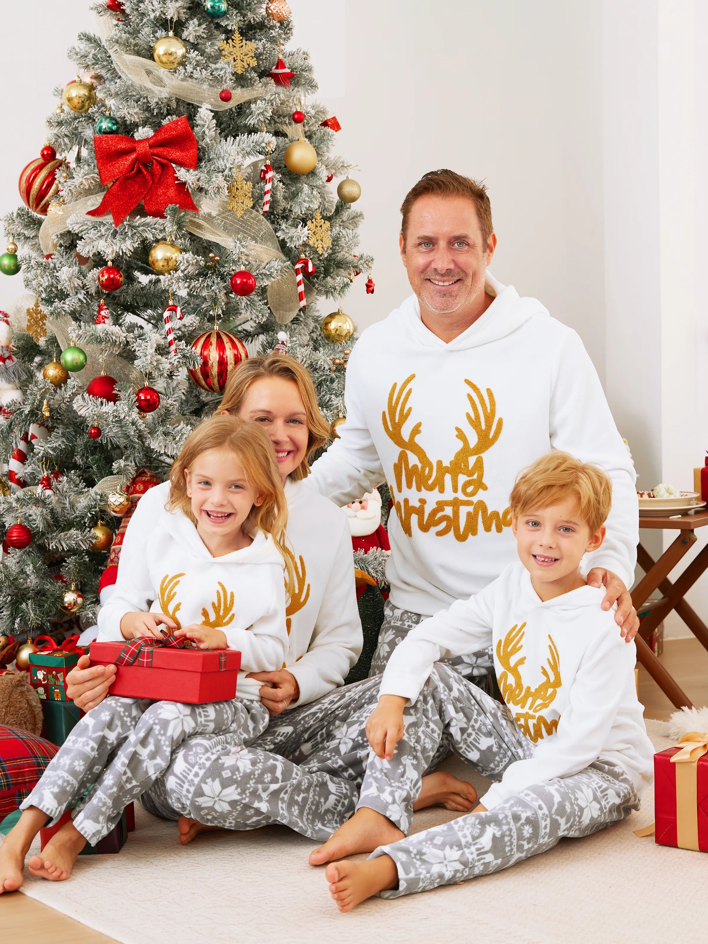 Christmas Family Matching Letters Embroidered Long-sleeve Hooded Fleece Pajamas Sets with Christmas Socks White