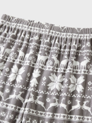 Celebrate Christmas in style with this adorable matching family sleepwear set featuring embroidered reindeer, snowflakes, hearts, and geometric prints.