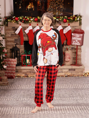 Celebrate the holidays in matching family pajamas! Our cozy and comfortable Gnome-printed top and red-black plaid printed pants are perfect for relaxing at home with your family.