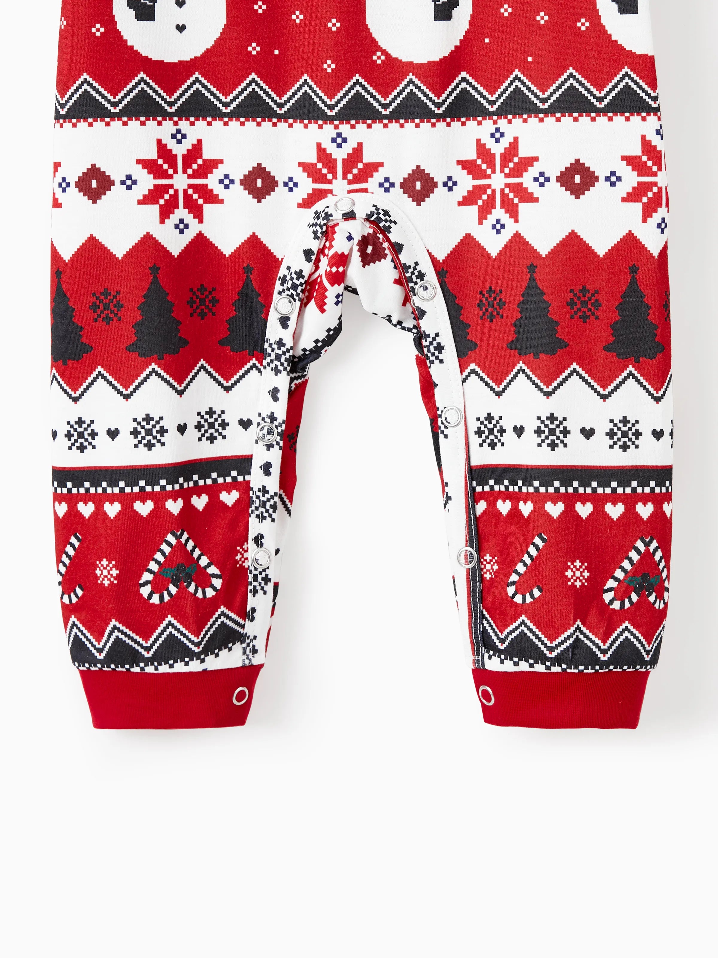 Enjoy cozy and comfortable family time with our red and black matching family pajamas featuring cute snowflake and snowman prints.