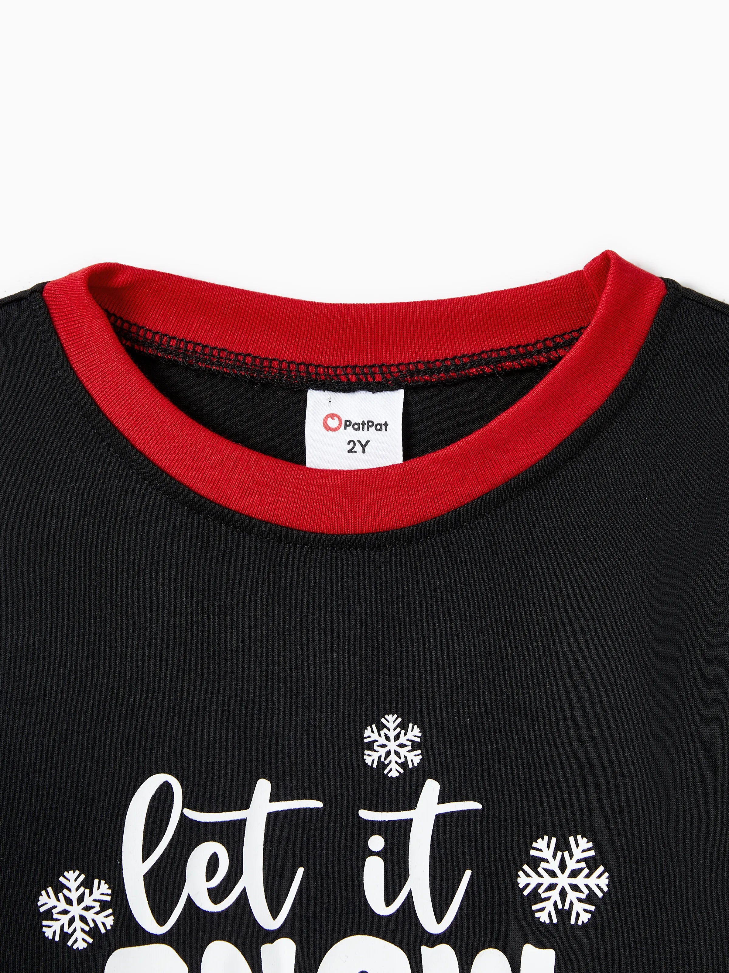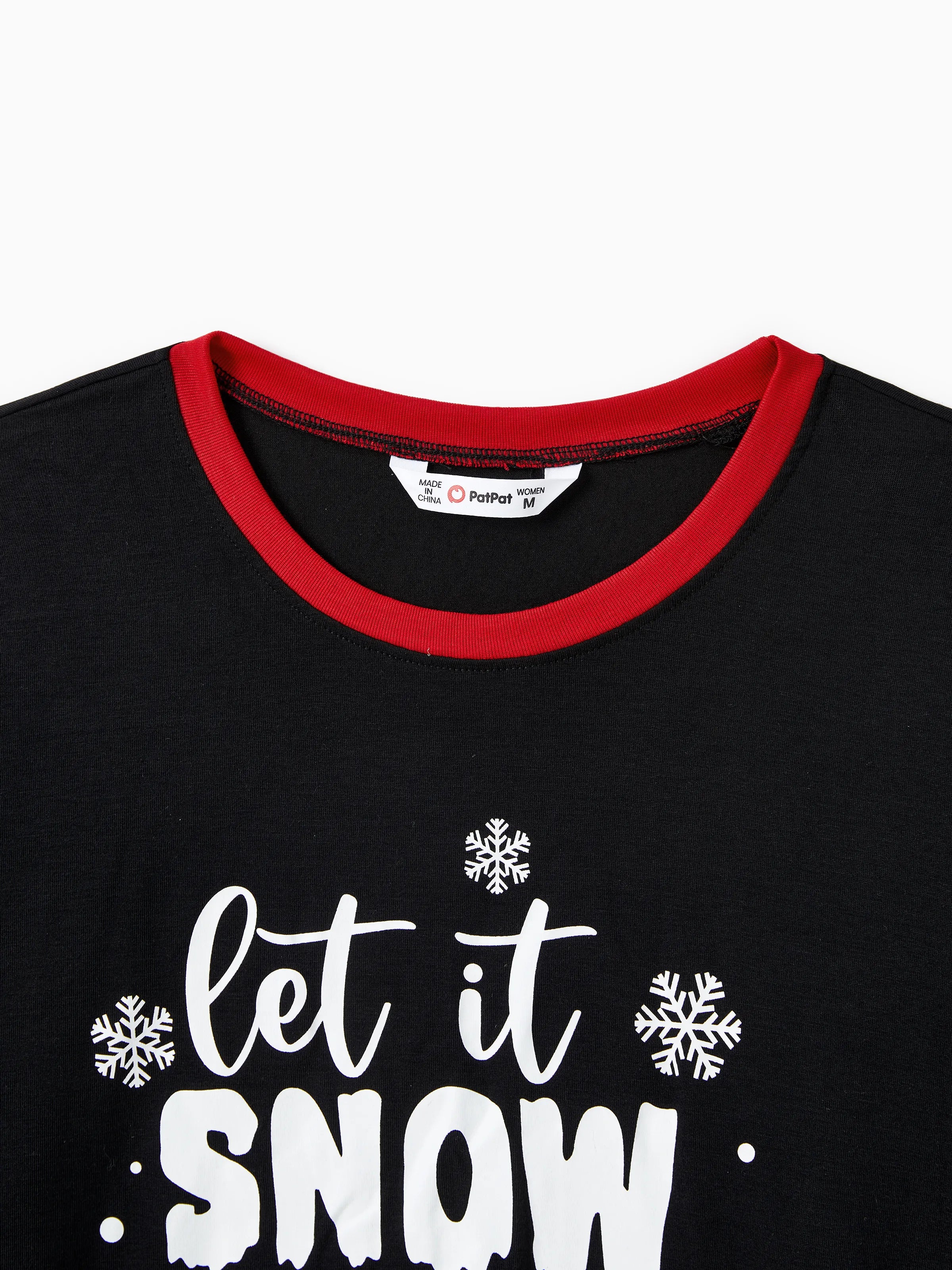 Christmas Family Pajamas Set Snowman Print Long-sleeve PJS with Christmas Socks Black