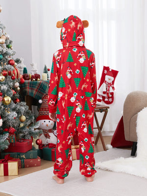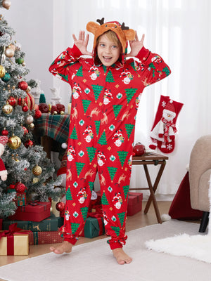 Get into the festive spirit with our matching family Christmas pajamas set. With 3D reindeer designs on the hood and full-body prints of Christmas trees, Santa Claus, and reindeer, the soft and comfortable pajamas come with a pet bandana to involve your furry friend in the celebrations.