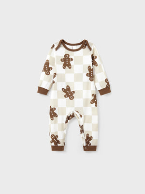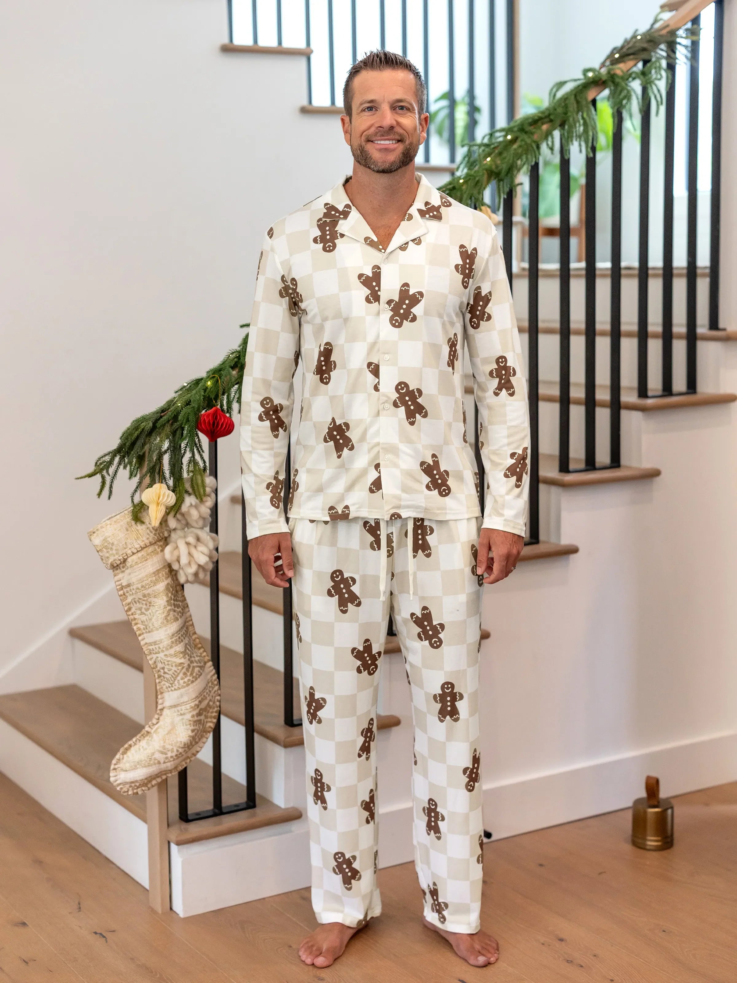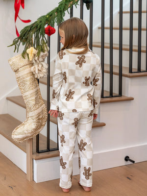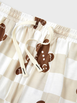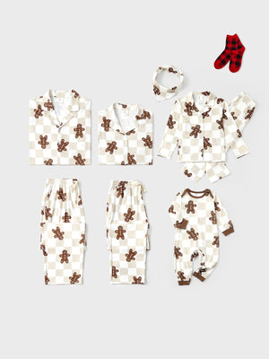 Christmas Matching Family Pajamas Set Block checkered Gingerbread Print PJS with Christmas Socks Khaki