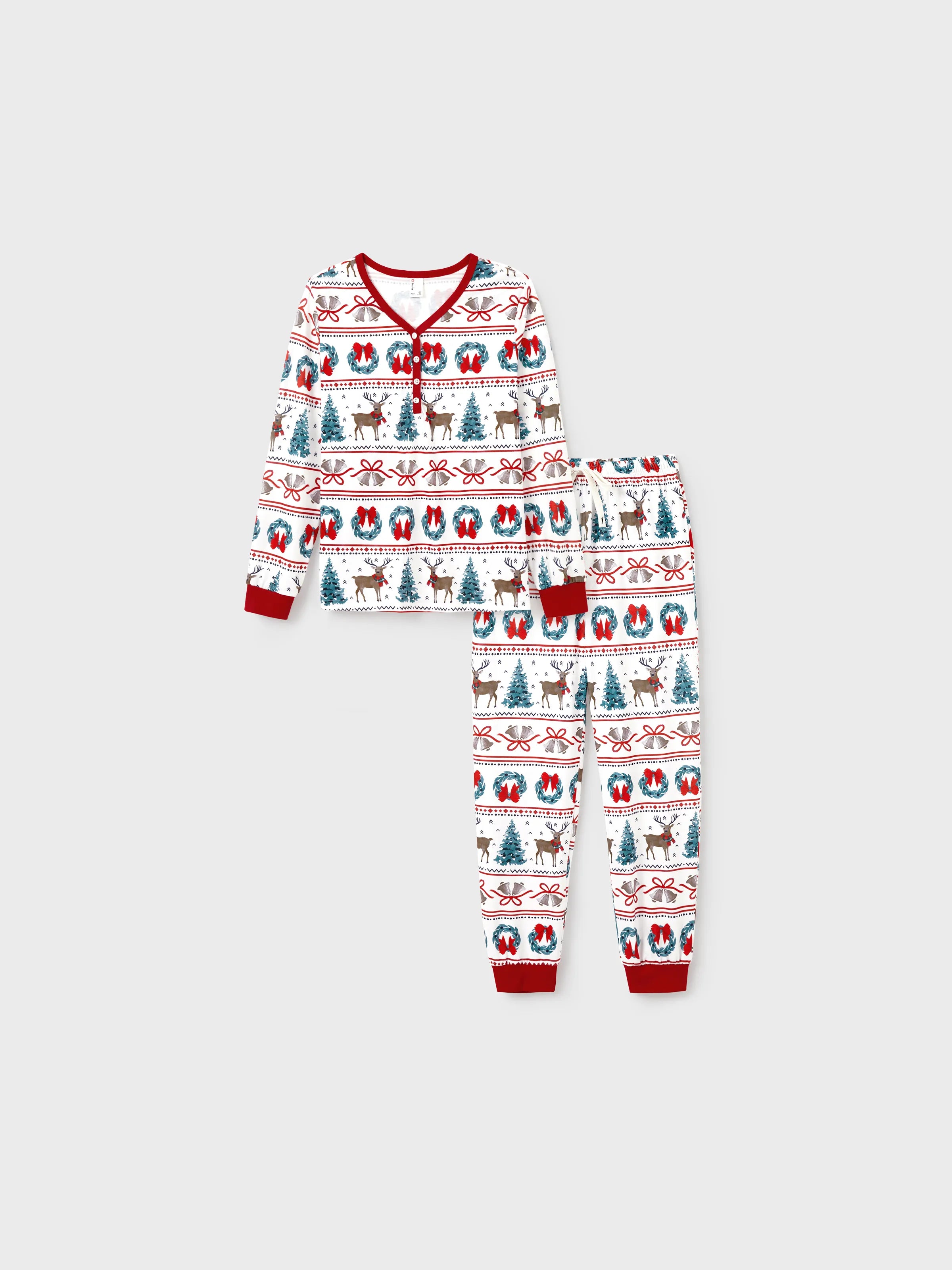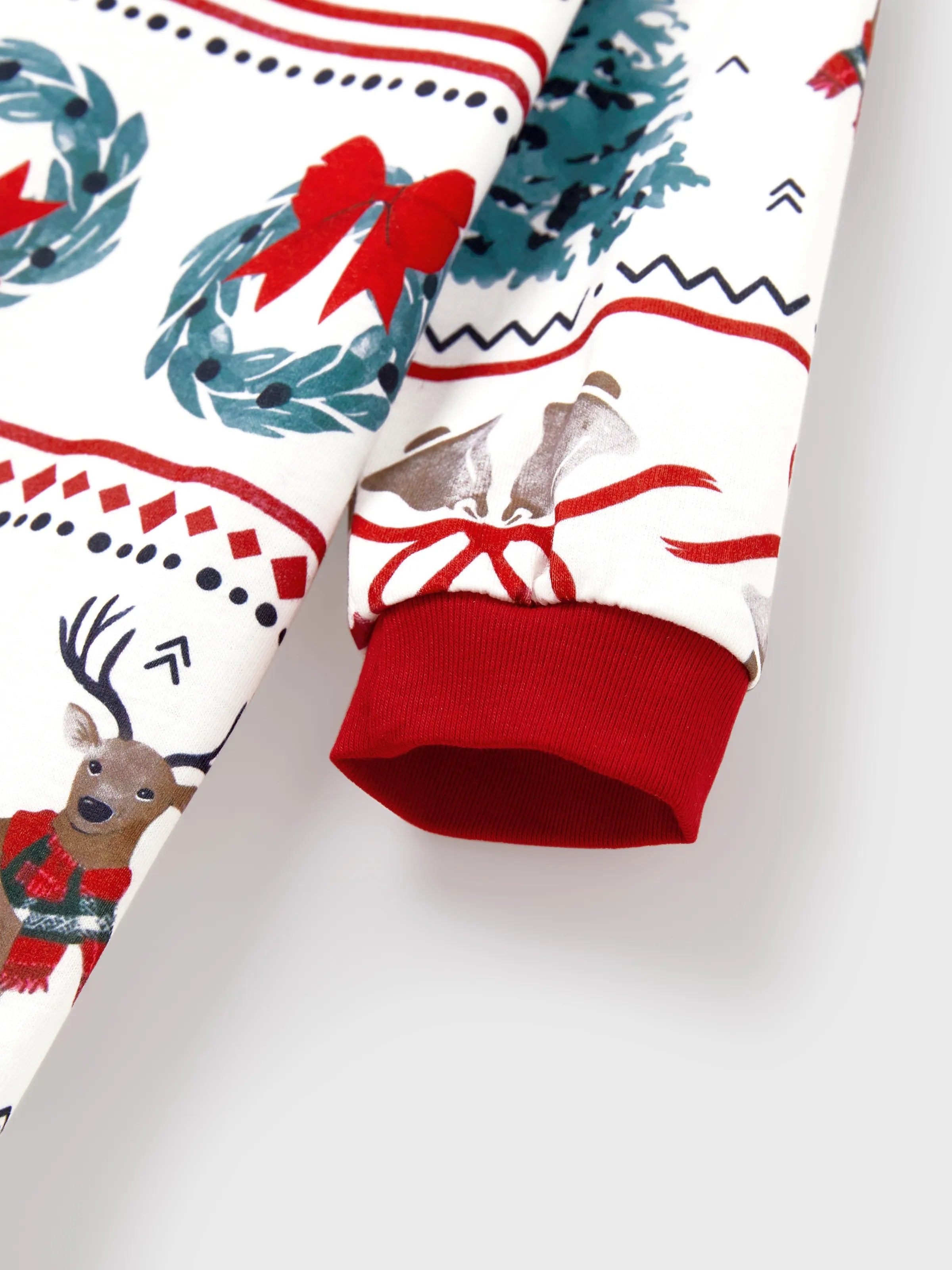 Christmas Matching Family Pajamas Set Christmas Elk and Bell Print Striped PJS with Christmas Socks White