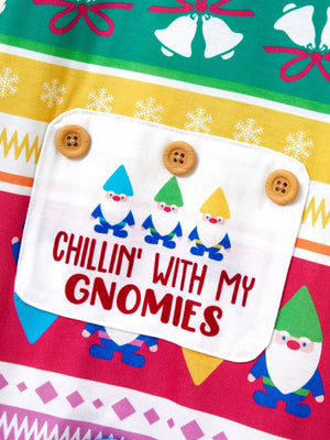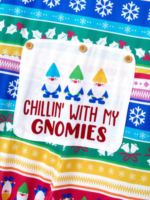 - Product features: Features colorful "Chillin' with My Gnomies" graphic and festive elements like snowflakes, gnomes, and holiday patterns. Adds a playful and cheerful touch to your Christmas celebrations.