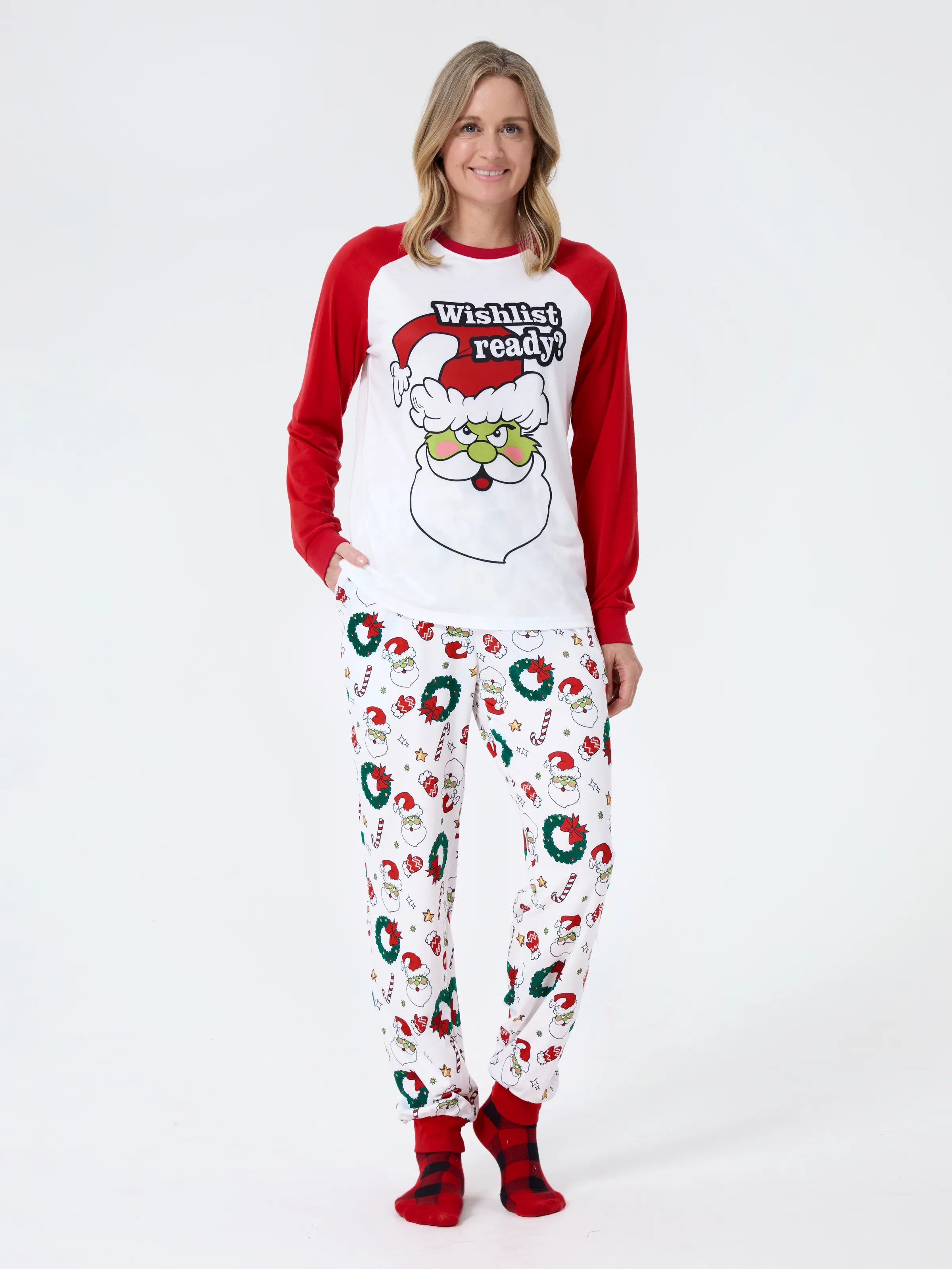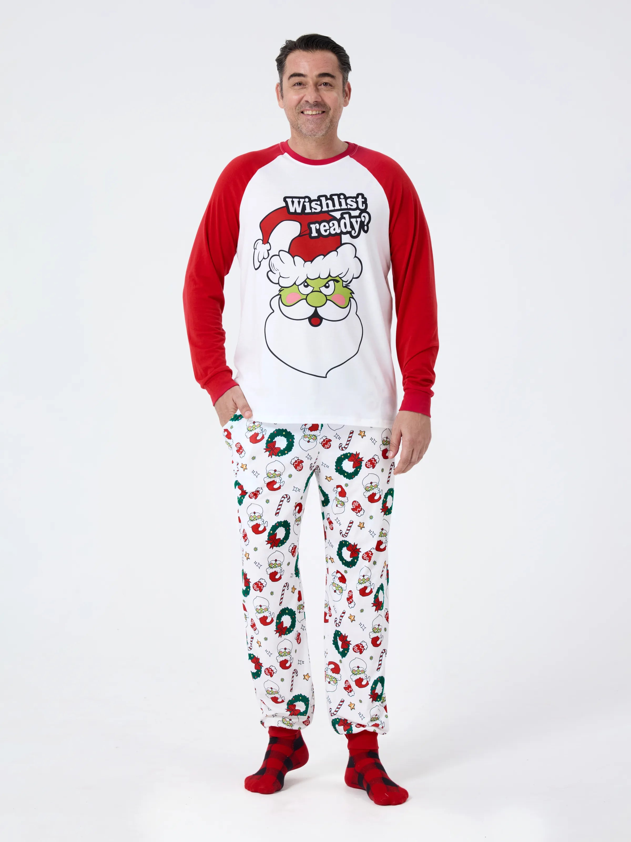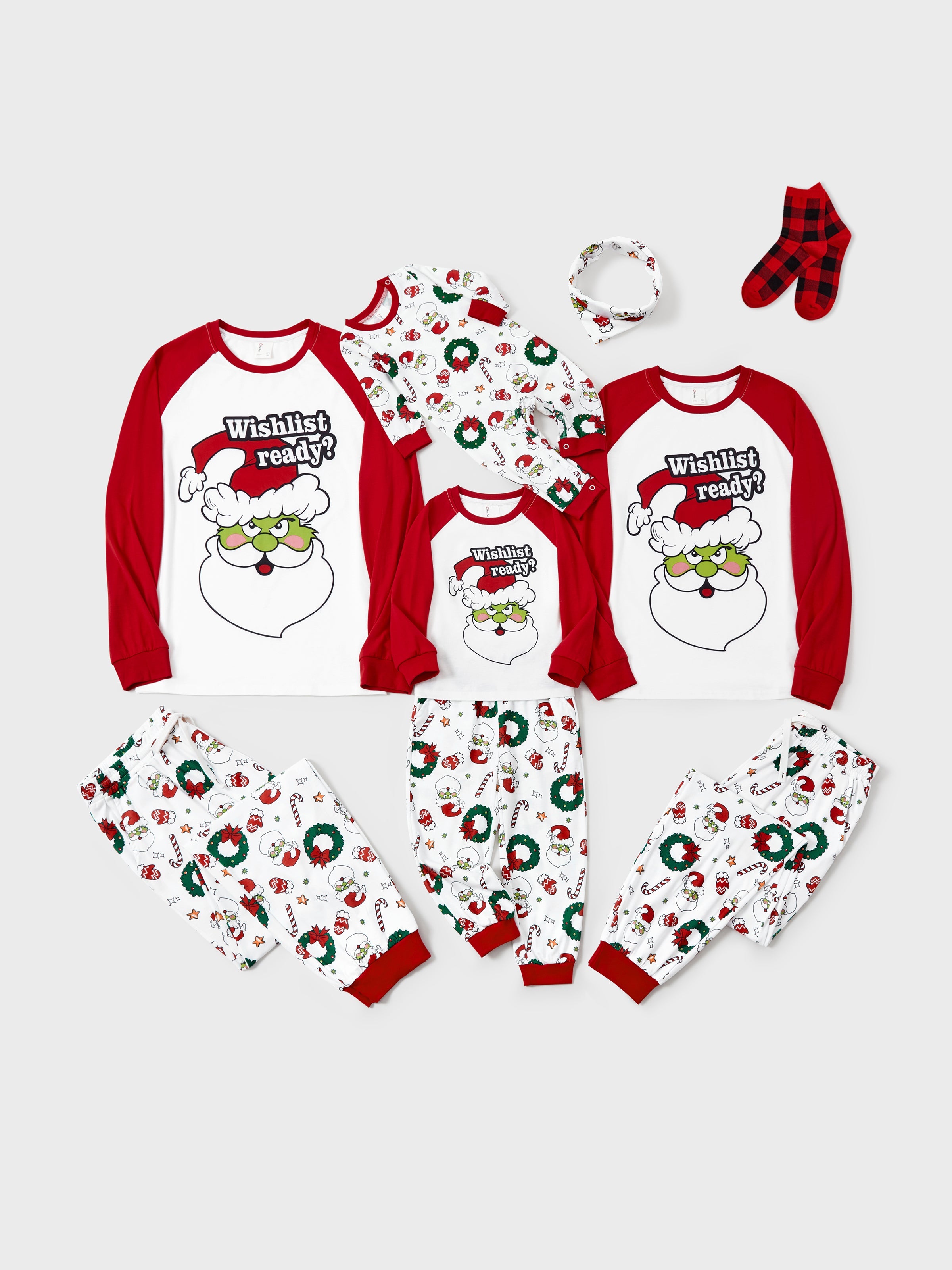 Christmas Matching Family Pajamas Set Christmas Grinch-themed Print PJS with Christmas Socks Red