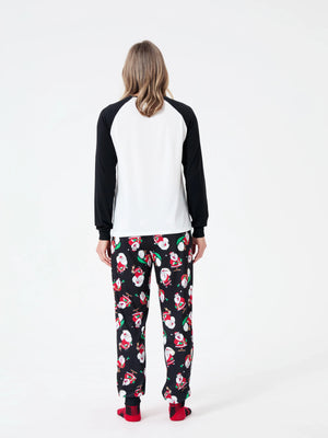 Christmas Matching Family Pajamas Set Christmas Santa Print Black and White PJS with Christmas Socks Black