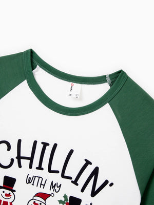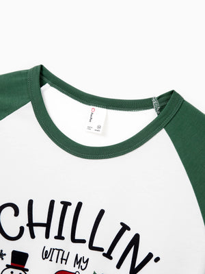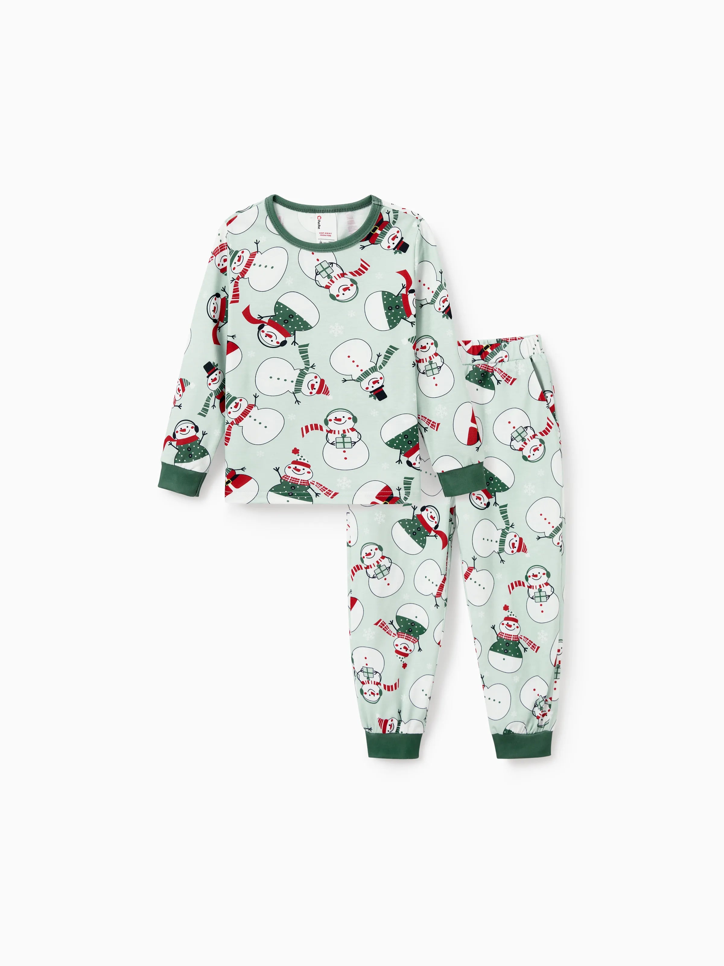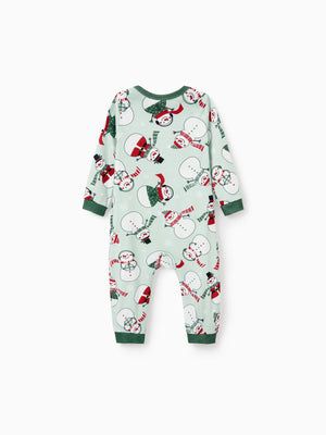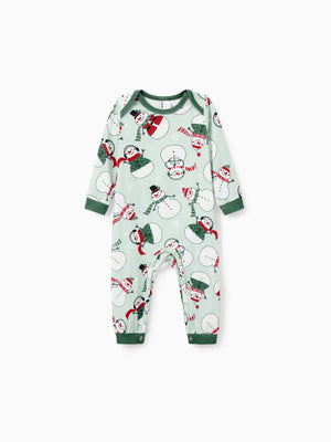 Christmas Matching Family Pajamas Set Christmas Snowman Print PJS with Christmas Socks Mint Green