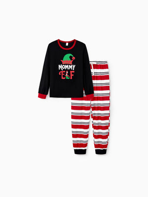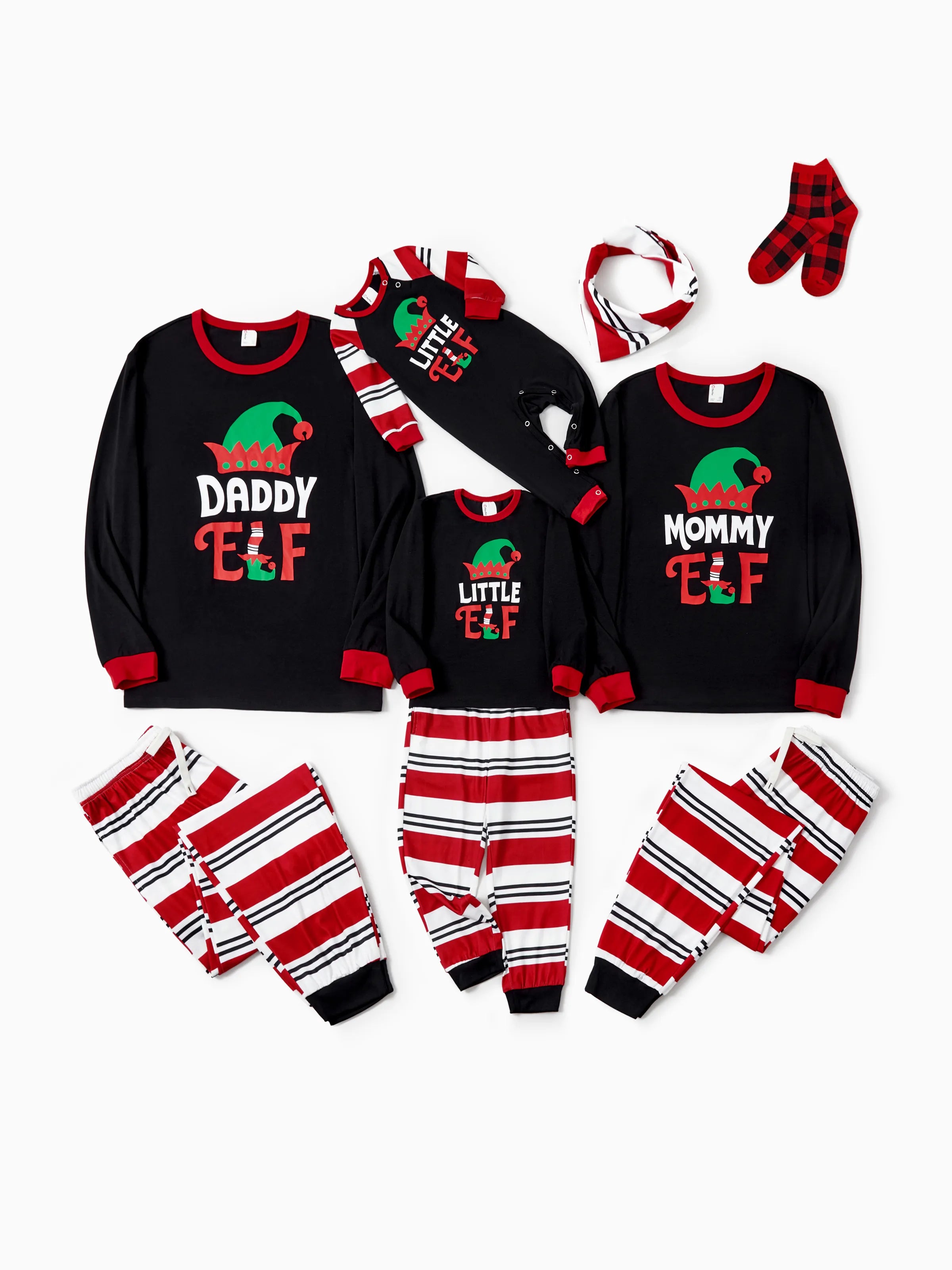 Christmas Matching Family Pajamas Set Elf Print PJS with Christmas Socks Black