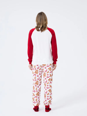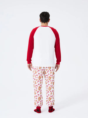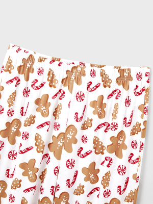 Christmas Matching Family Pajamas Set Gingerbread and Candy Cane Print PJS with Christmas Socks Red