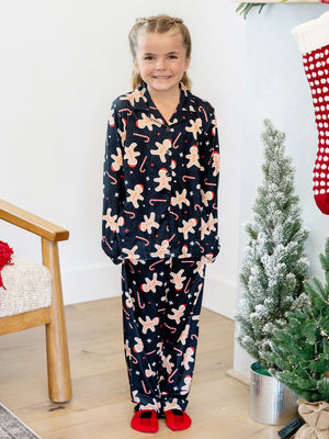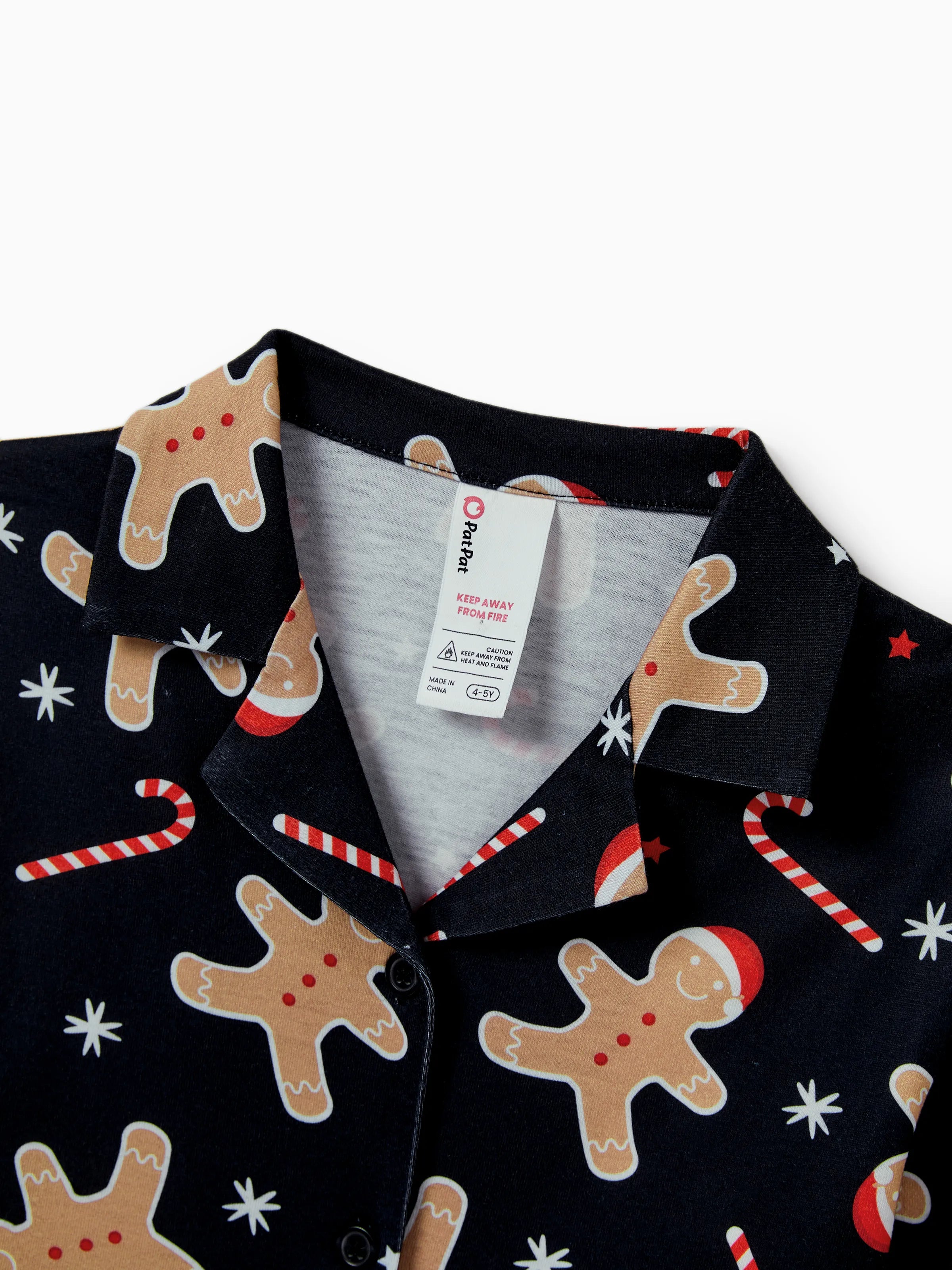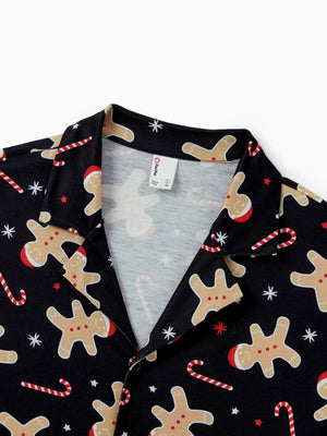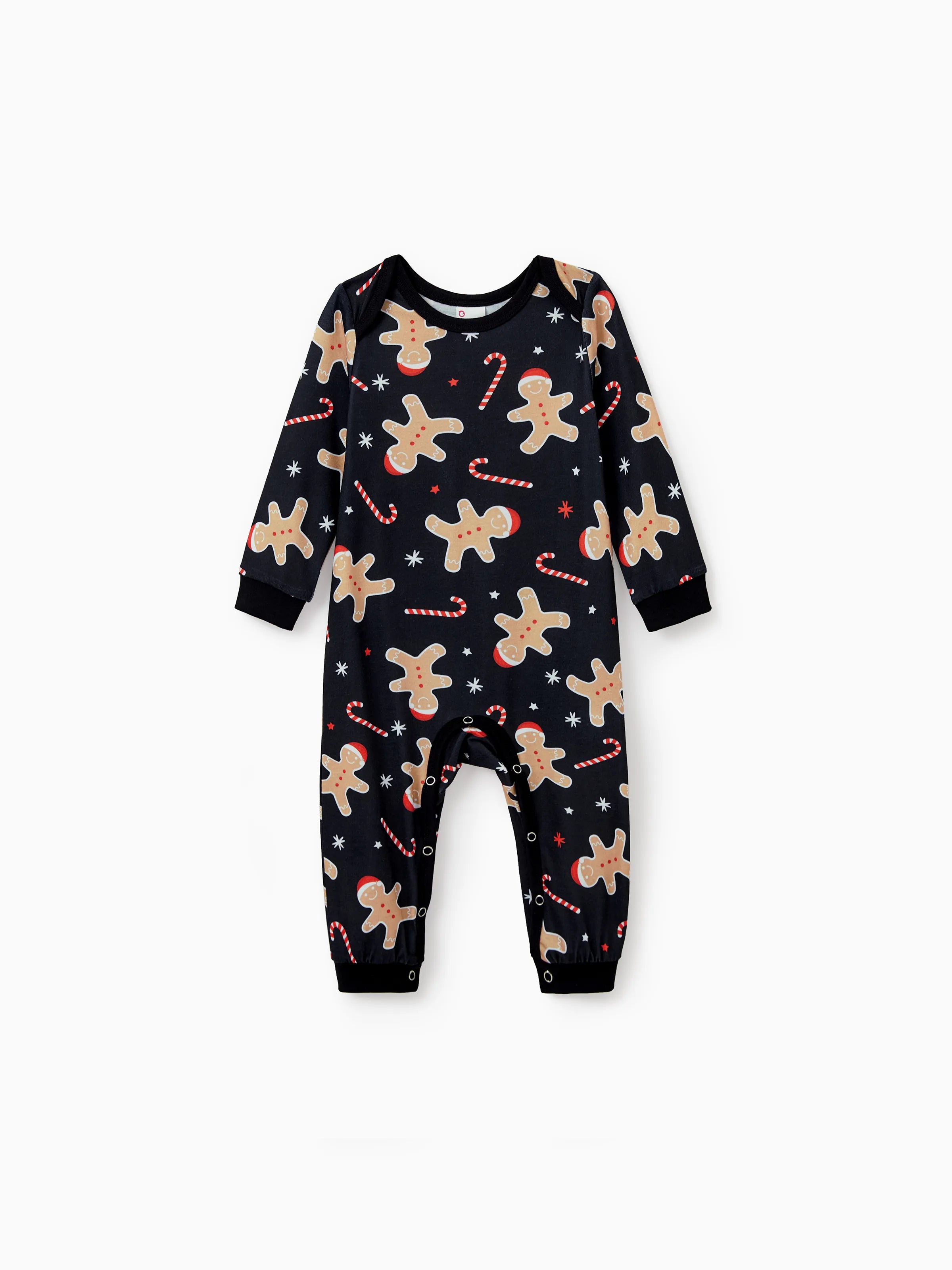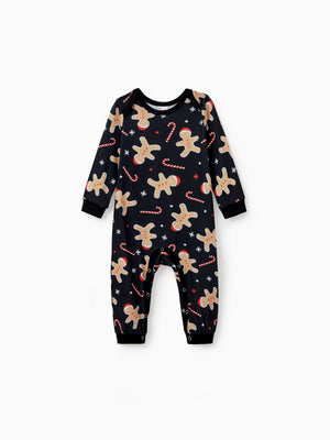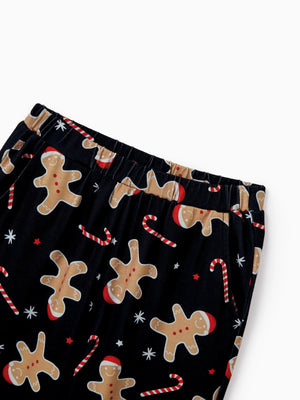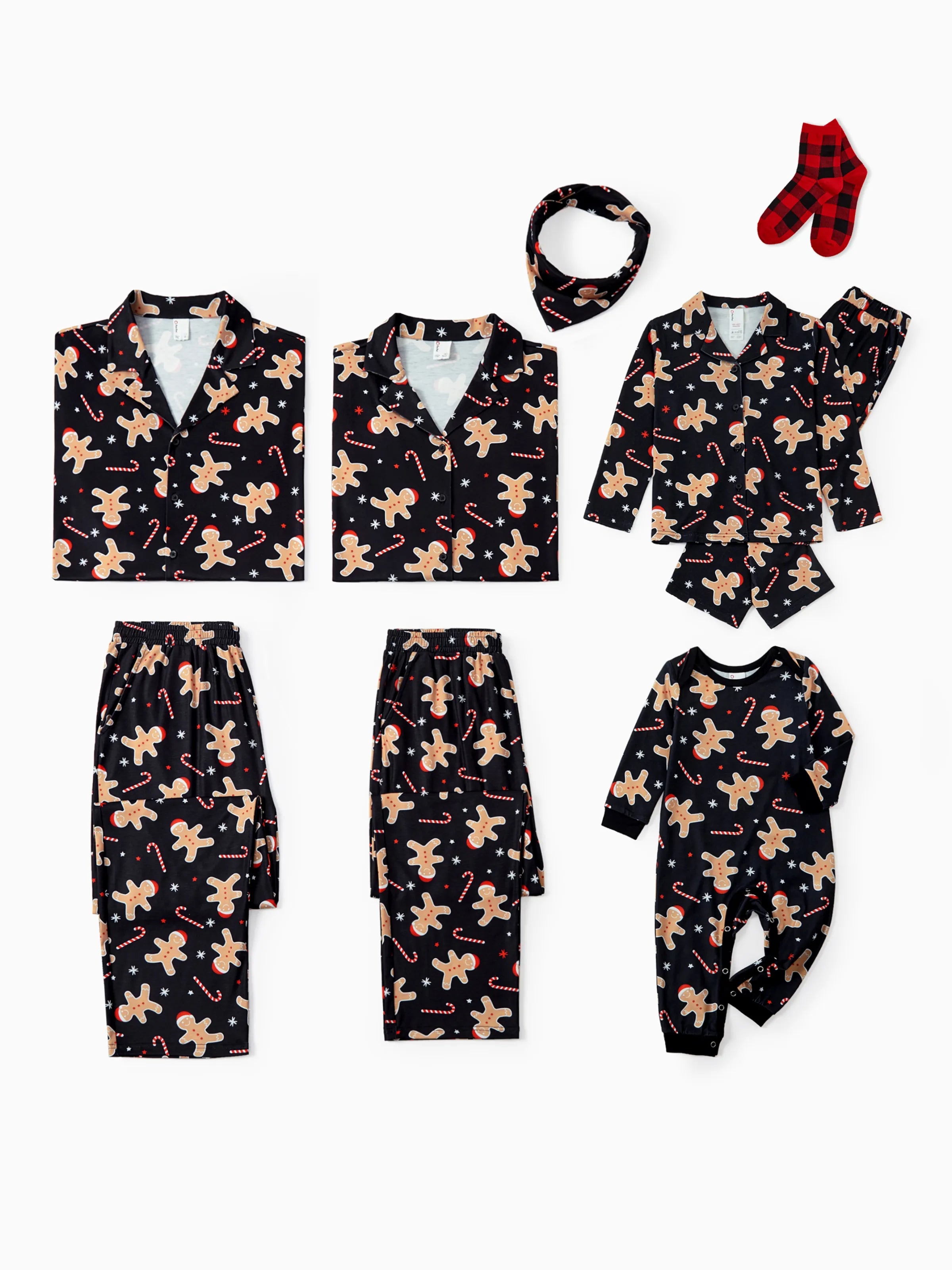 Christmas Matching Family Pajamas Set Gingerbread Print Black PJS with Christmas Socks Black