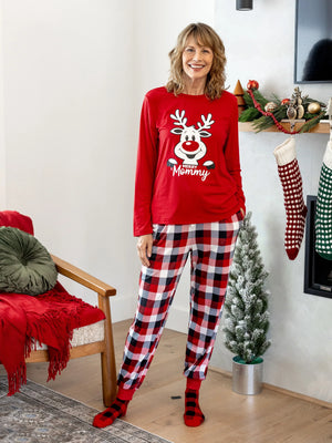 Christmas Matching Family Pajamas Set Glow In The Dark Reindeer Print PJS with Christmas Socks Red