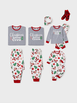 Christmas Matching Family Pajamas Set Glow In The Dark Santa Claus Christmas-themed Print PJS with Christmas Socks Color block
