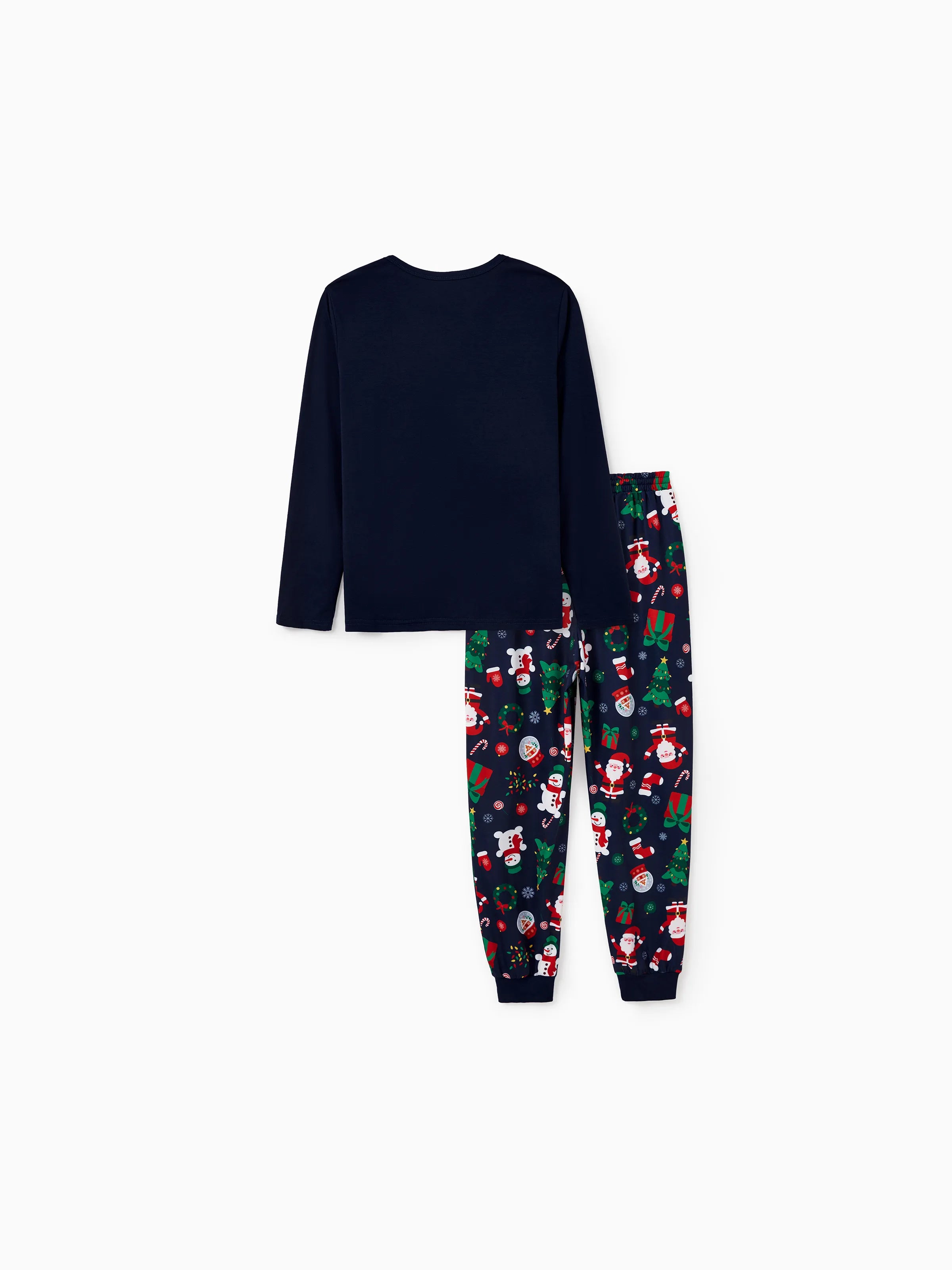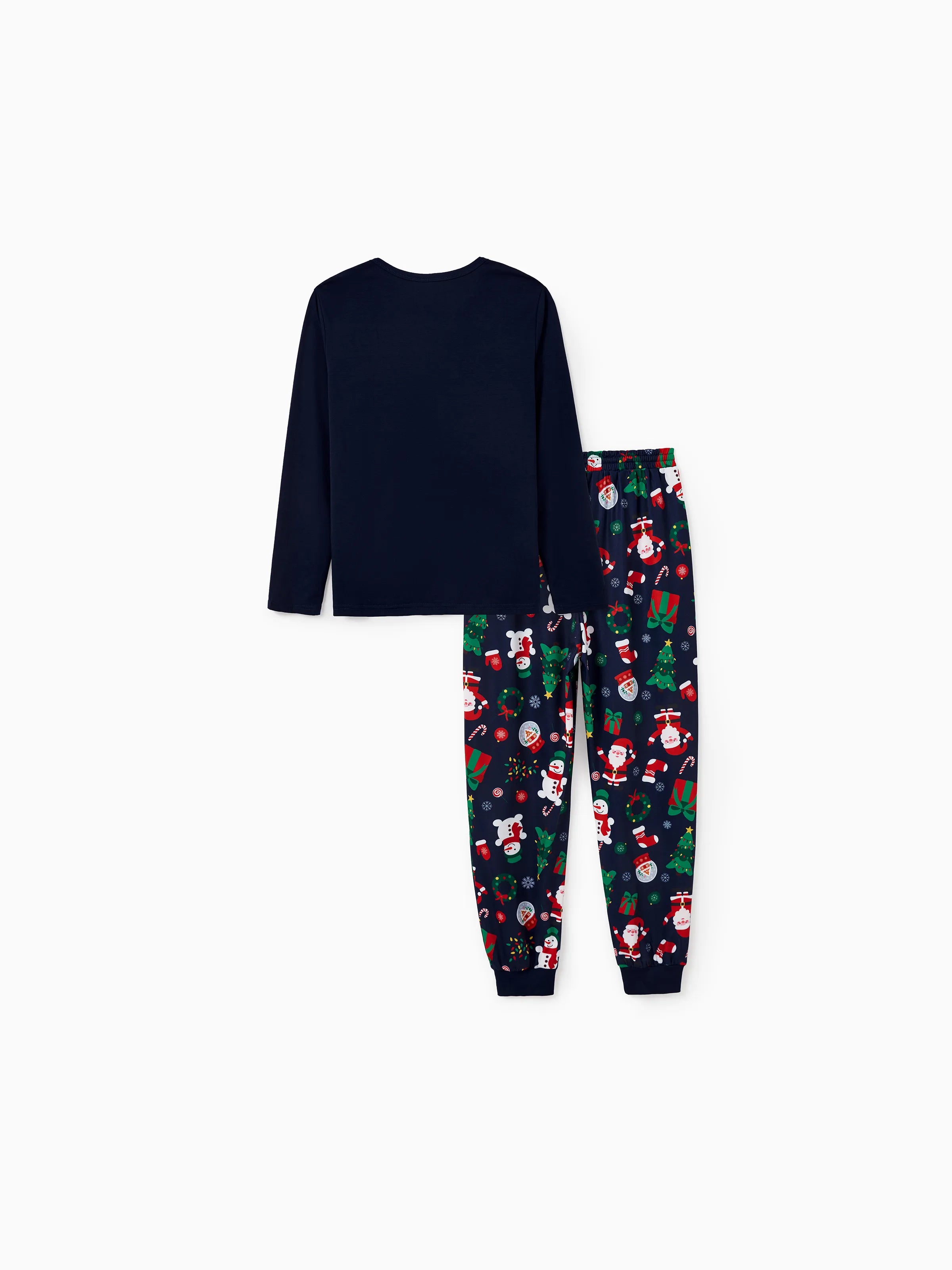 Christmas Matching Family Pajamas Set Glow In The Dark Santa Claus Dark Blue PJS with Christmas Socks Deep Blue