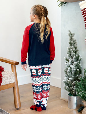 Christmas Matching Family Pajamas Set Glow In The Dark Santa Claus Print PJS with Christmas Socks Deep Blue