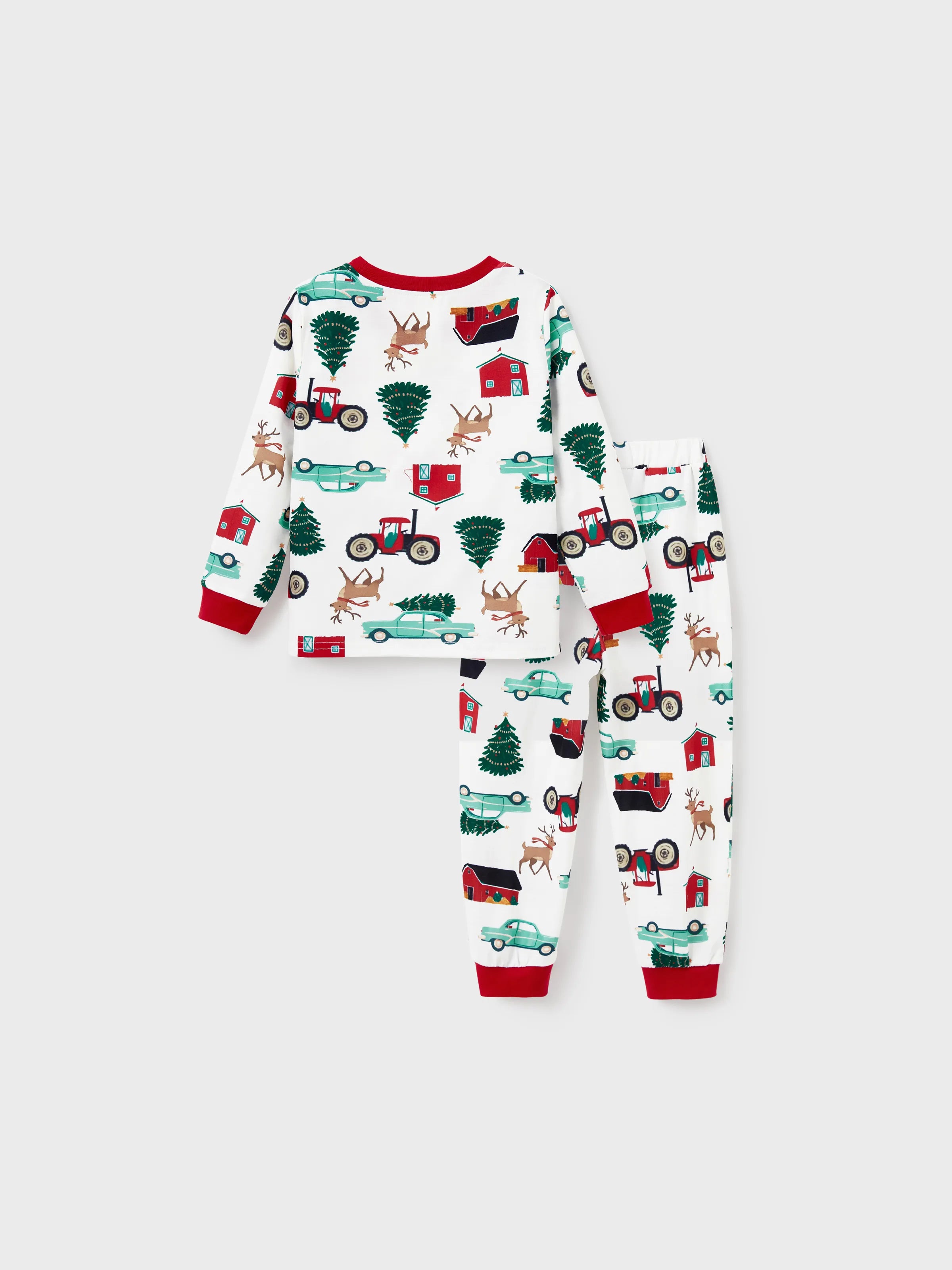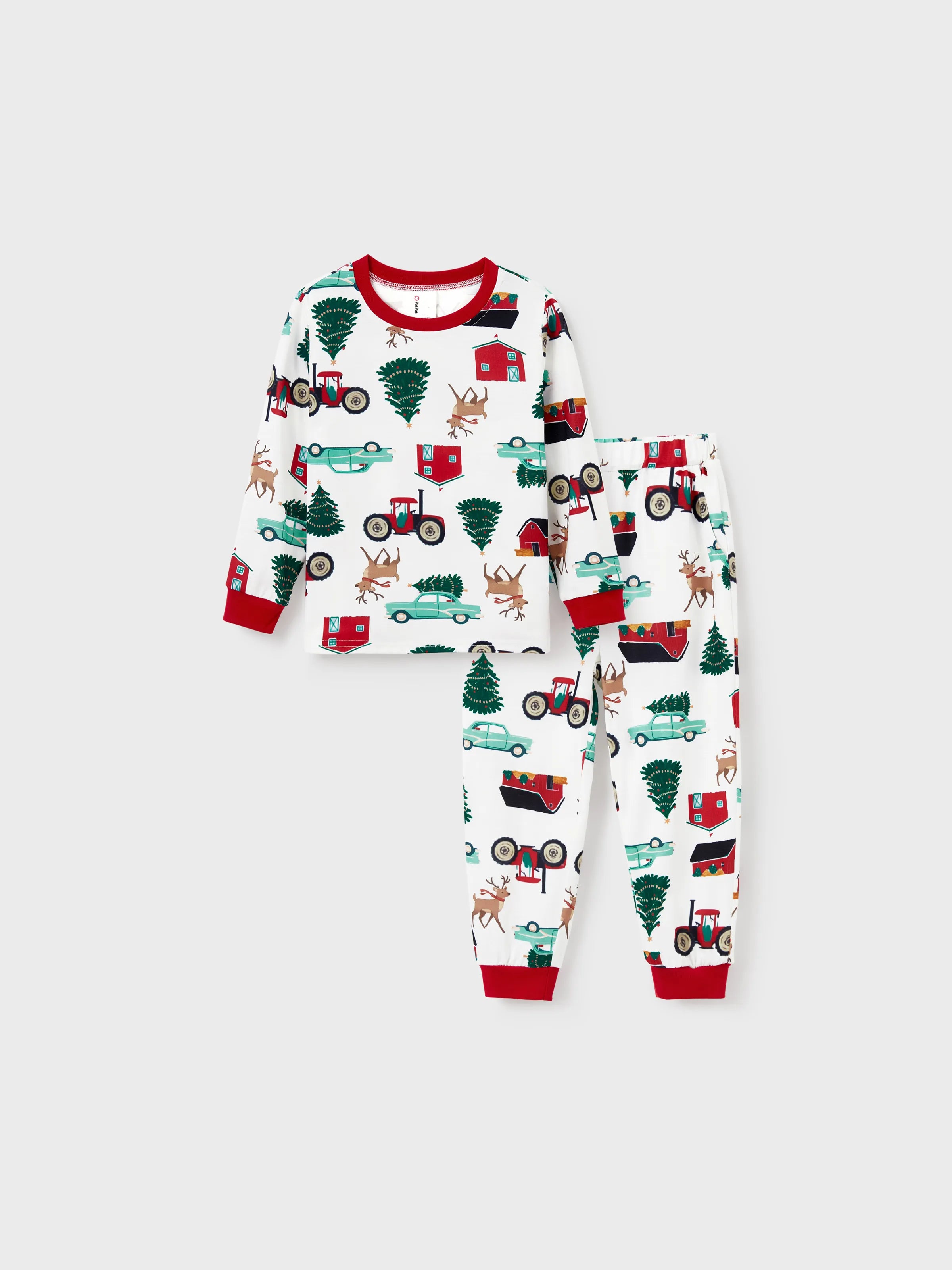 Christmas Matching Family Pajamas Set Reindeer and Car Print PJS with Christmas Socks Red