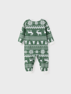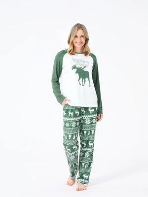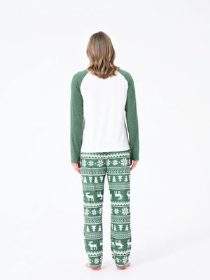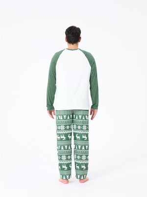 Christmas Matching Family Pajamas Set Reindeer and Snowflake Green Print PJS with Christmas Socks Dark Green
