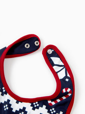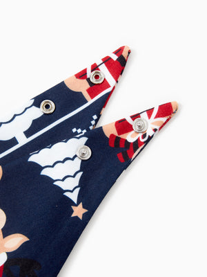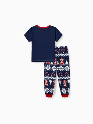 Christmas Matching Family Pajamas Set Reindeer and Snowflake Print PJS Deep Blue