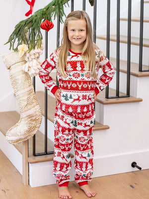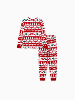 Festive family Christmas pajamas with reindeer, snowman, and Christmas tree prints to celebrate the holiday season joyfully. Embrace the spirit of togetherness and comfort in style.