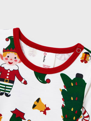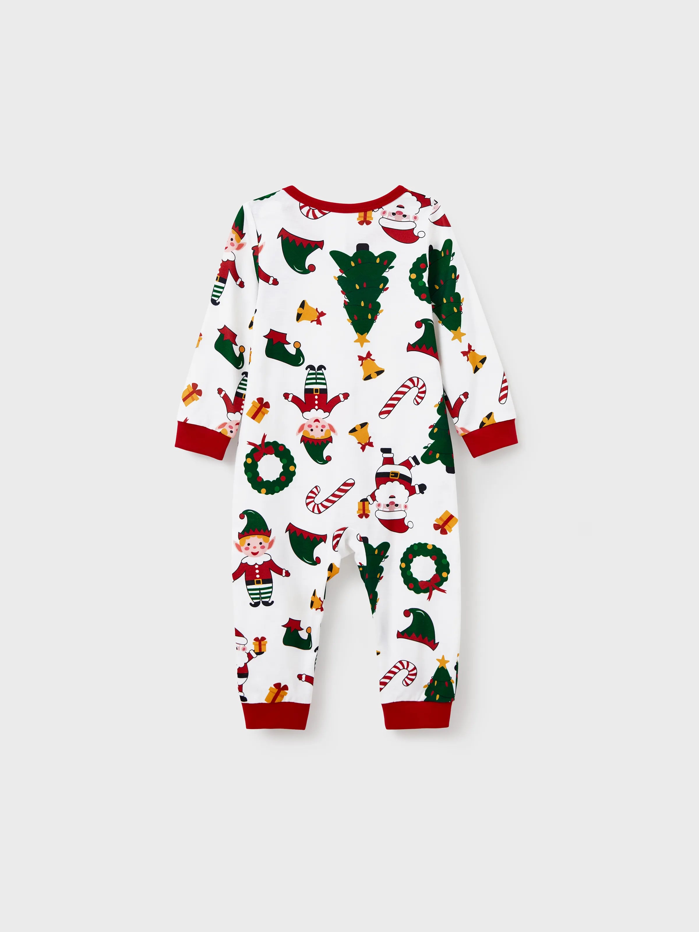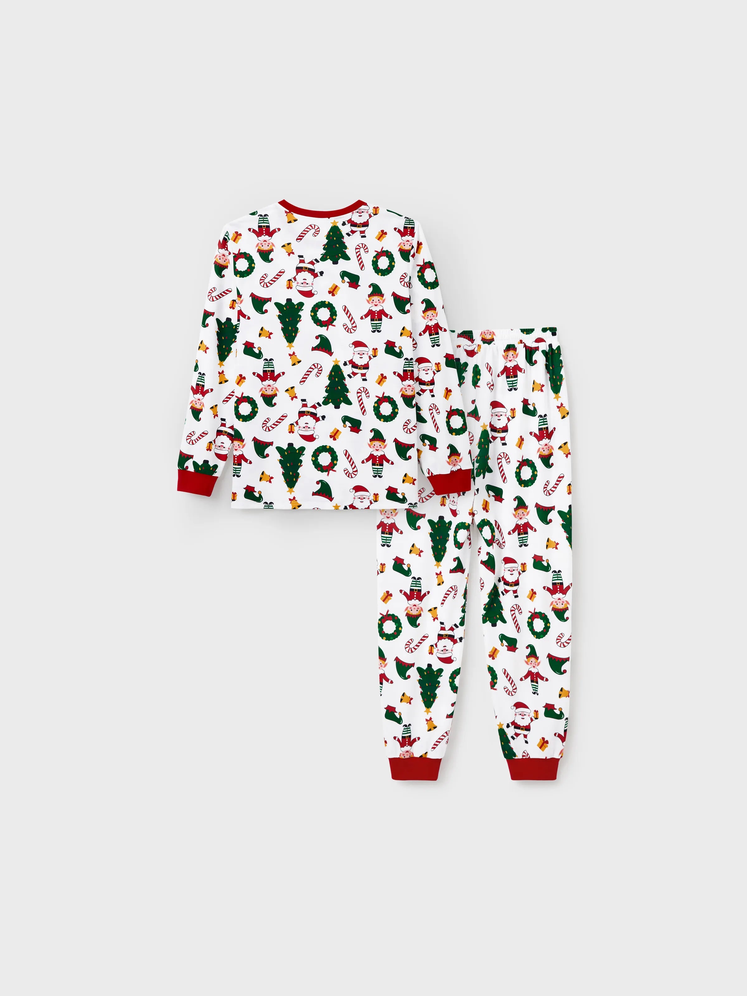 Christmas Matching Family Pajamas Set Santa Claus and Christmas Tree Print Long-sleeve PJS with Christmas Socks White