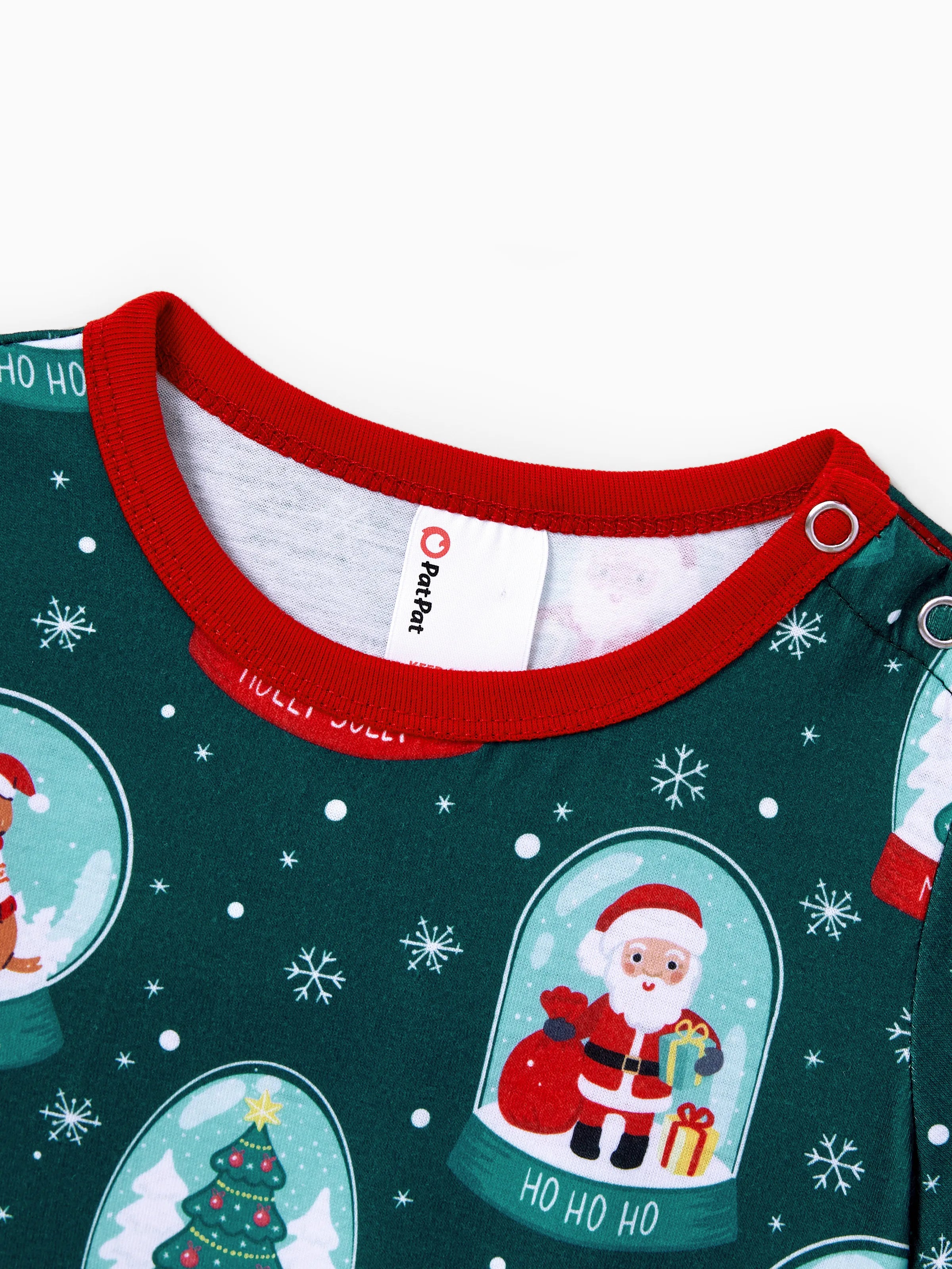 Christmas Matching Family Pajamas Set Santa Claus Christmas-themed Print PJS Turquoise