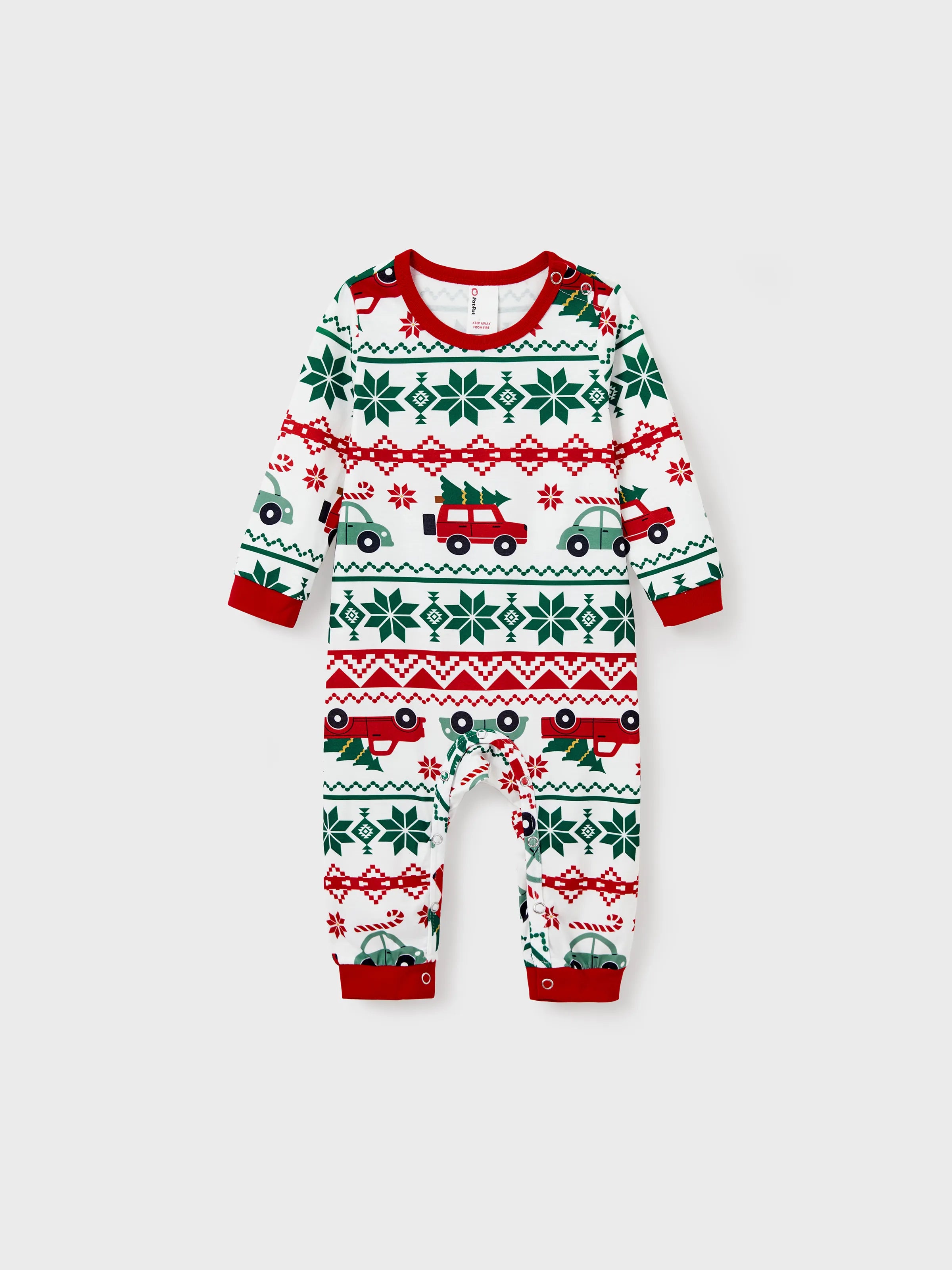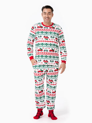 Christmas Matching Family Pajamas Set Snowflake and Car Print PJS with Christmas Socks Red