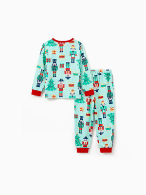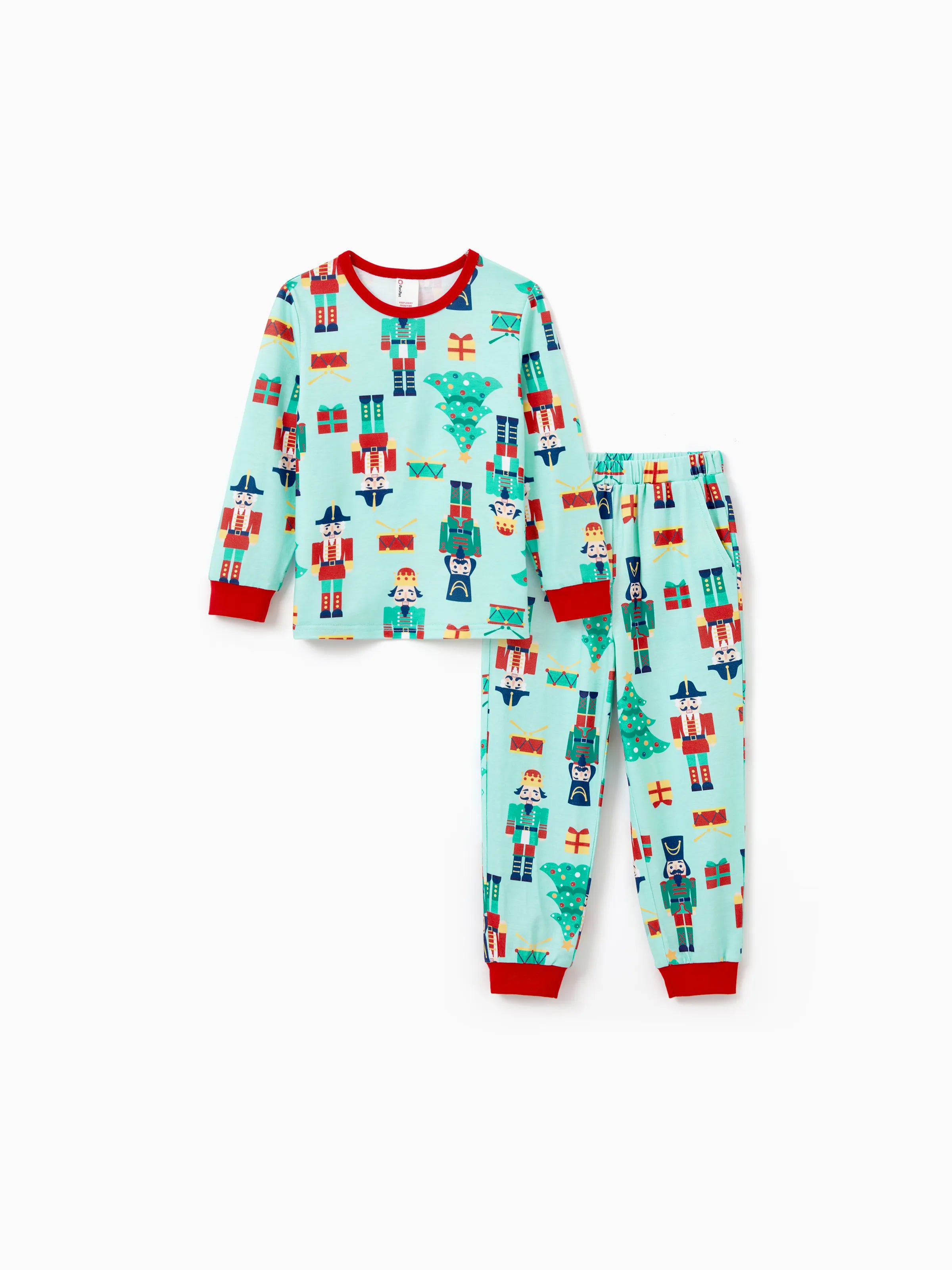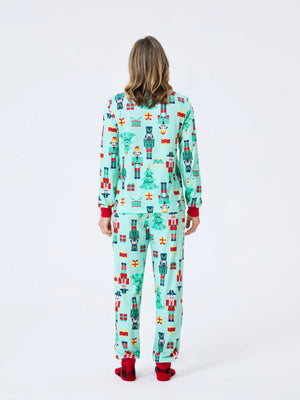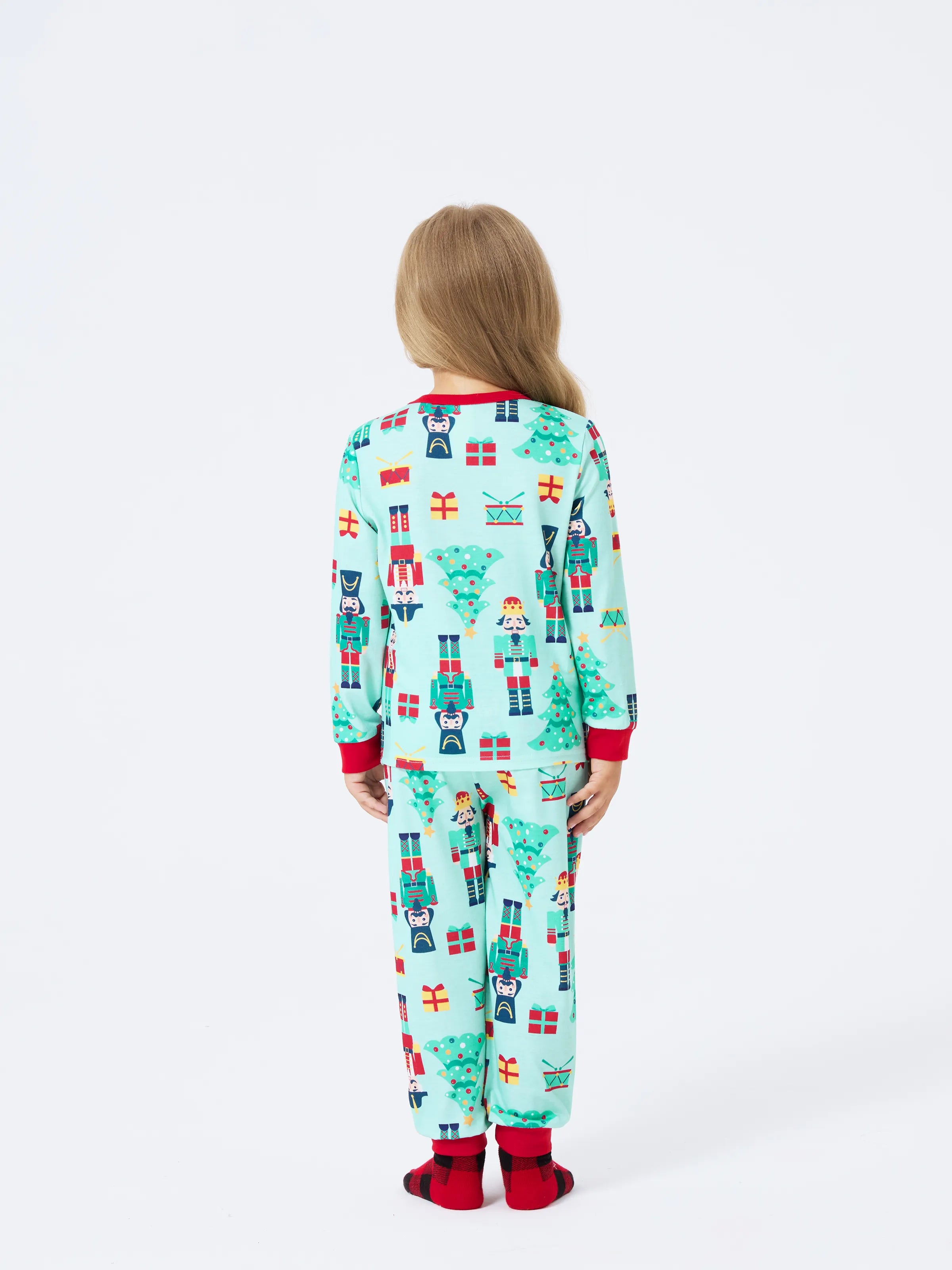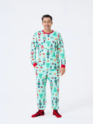Christmas Matching Family Pajamas Set Soldier and Christmas Tree Print PJS with Christmas Socks Pale Green