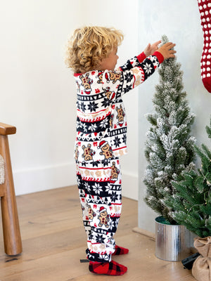 Cozy family matching pajama set with Christmas elements for a festive vibe.