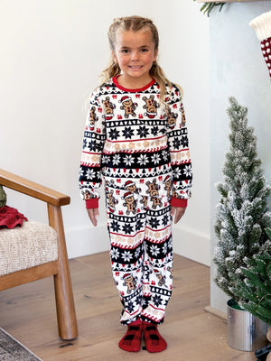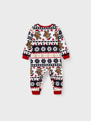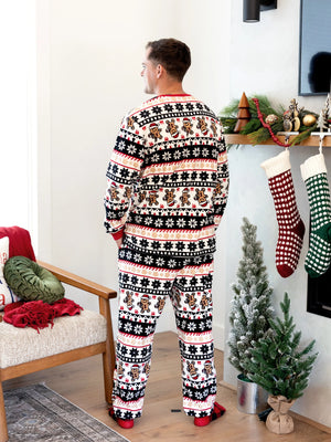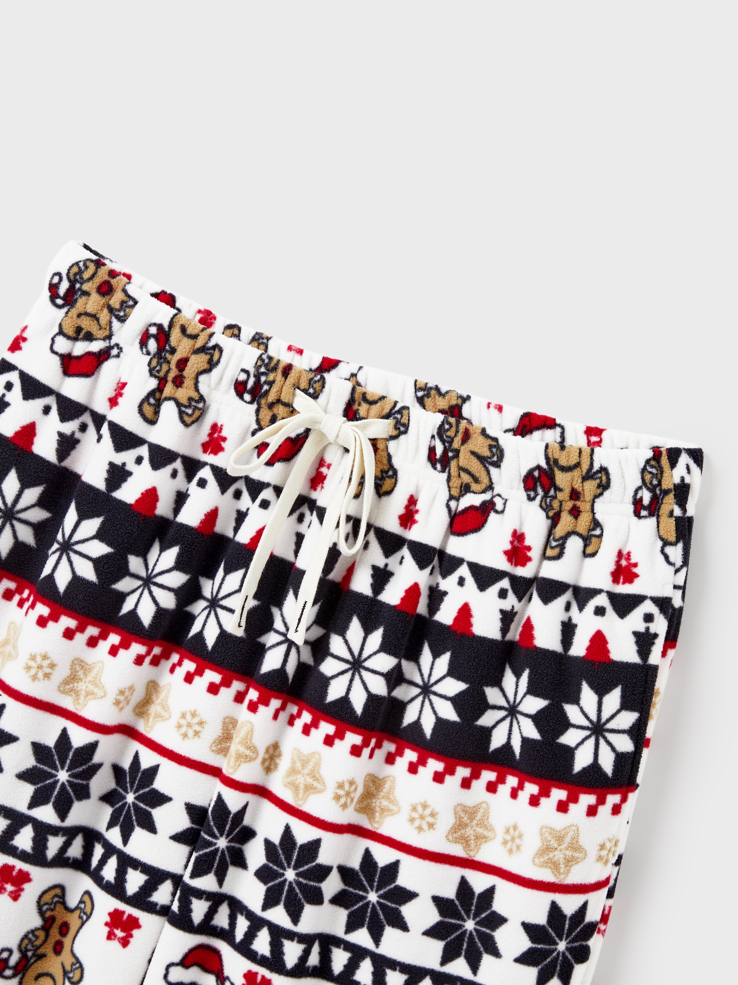 Christmas Matching Family Fleece Pajamas Set Gingerbread and Snowflake Print PJS with Christmas Socks Red