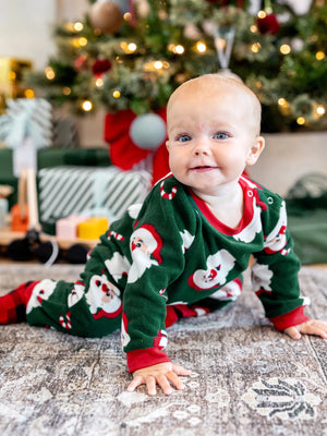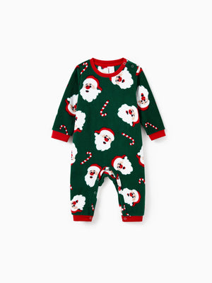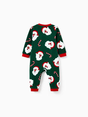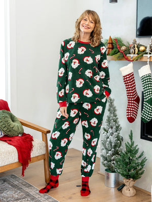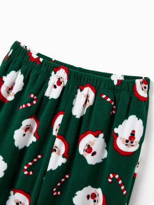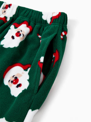 Christmas Matching Family Fleece Pajamas Set Santa Claus and Candy Cane Print PJS with Christmas Socks Dark Green