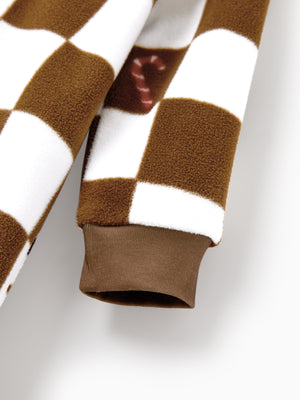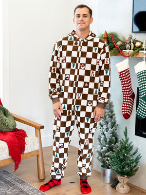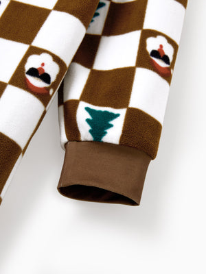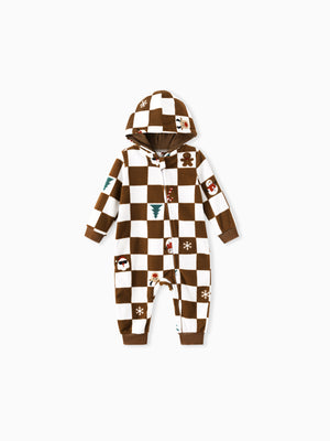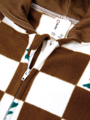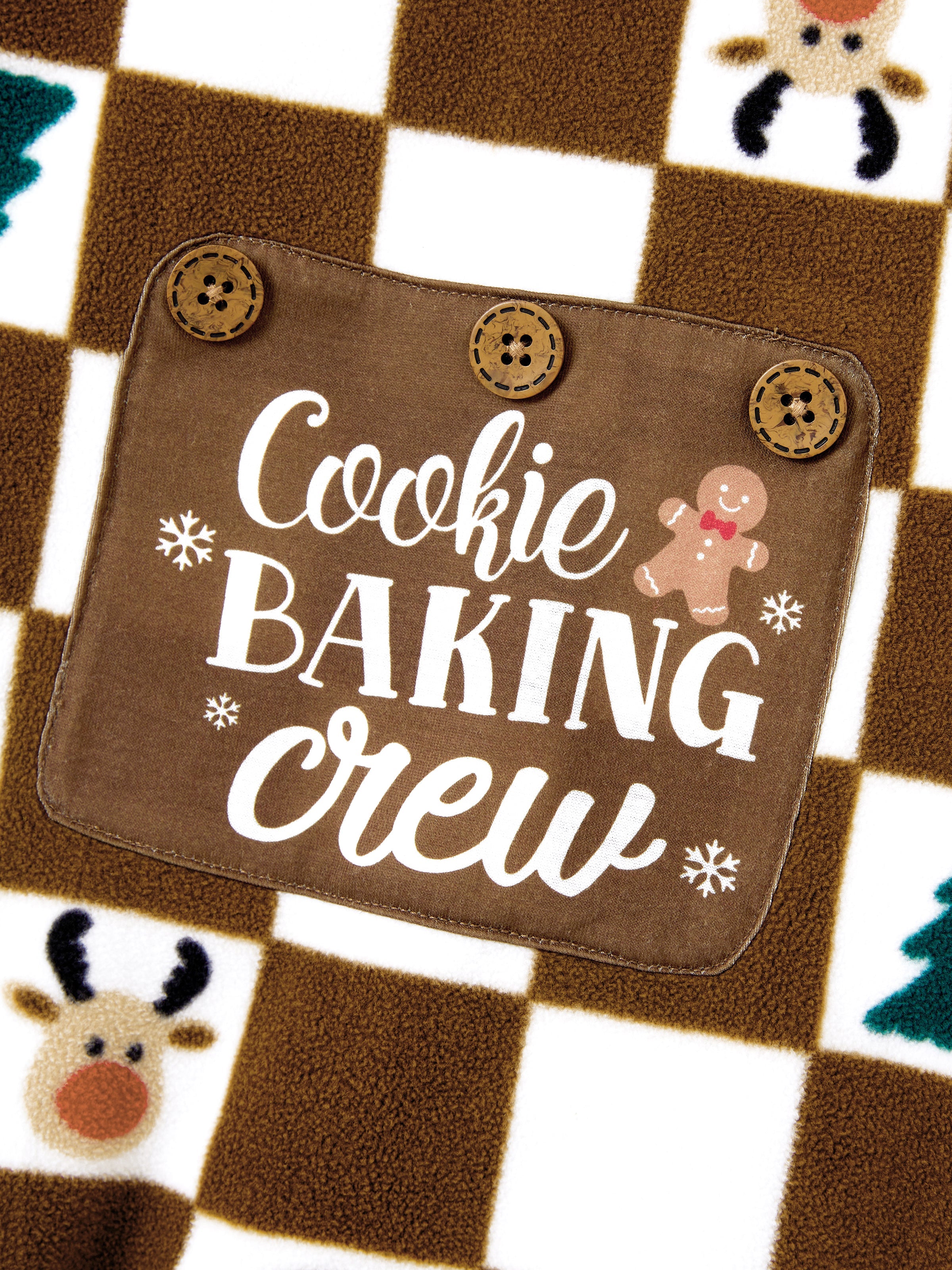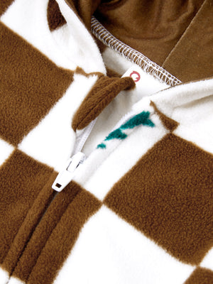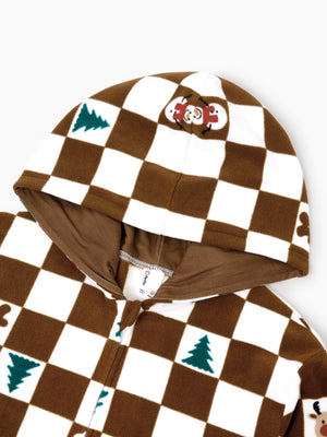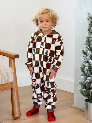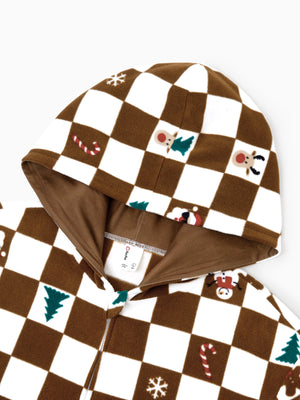 • Product features: Cozy fleece fabric for warmth, onesies with hooded, front zip and gingerbread Christmas-theme plaid print.