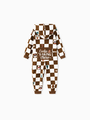 Christmas Onesies Matching Family Fleece Hoodie Pajamas Set Gingerbread Christmas-theme Plaid Print PJS with Christmas Socks Color block
