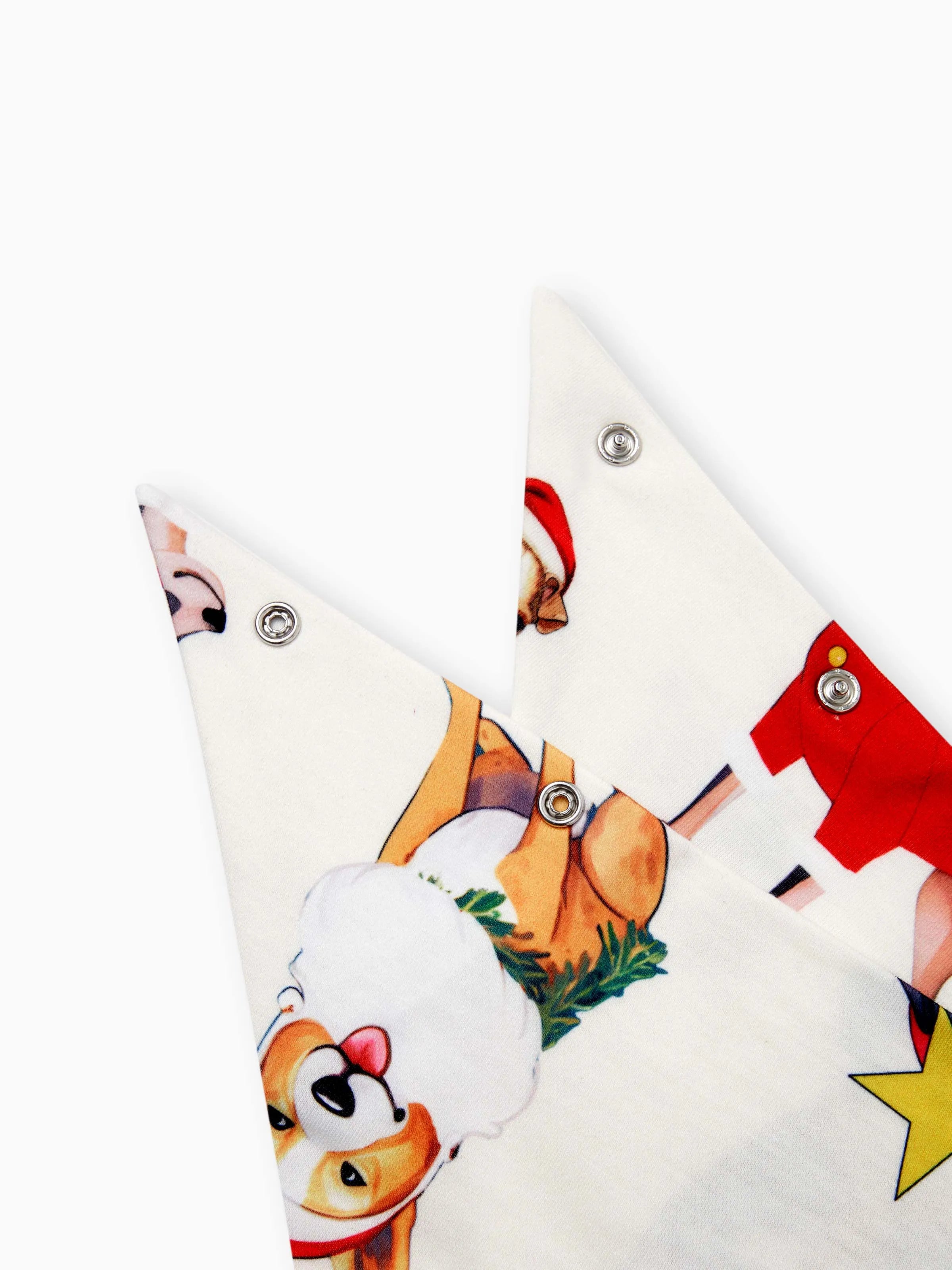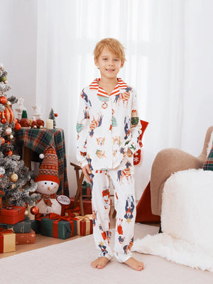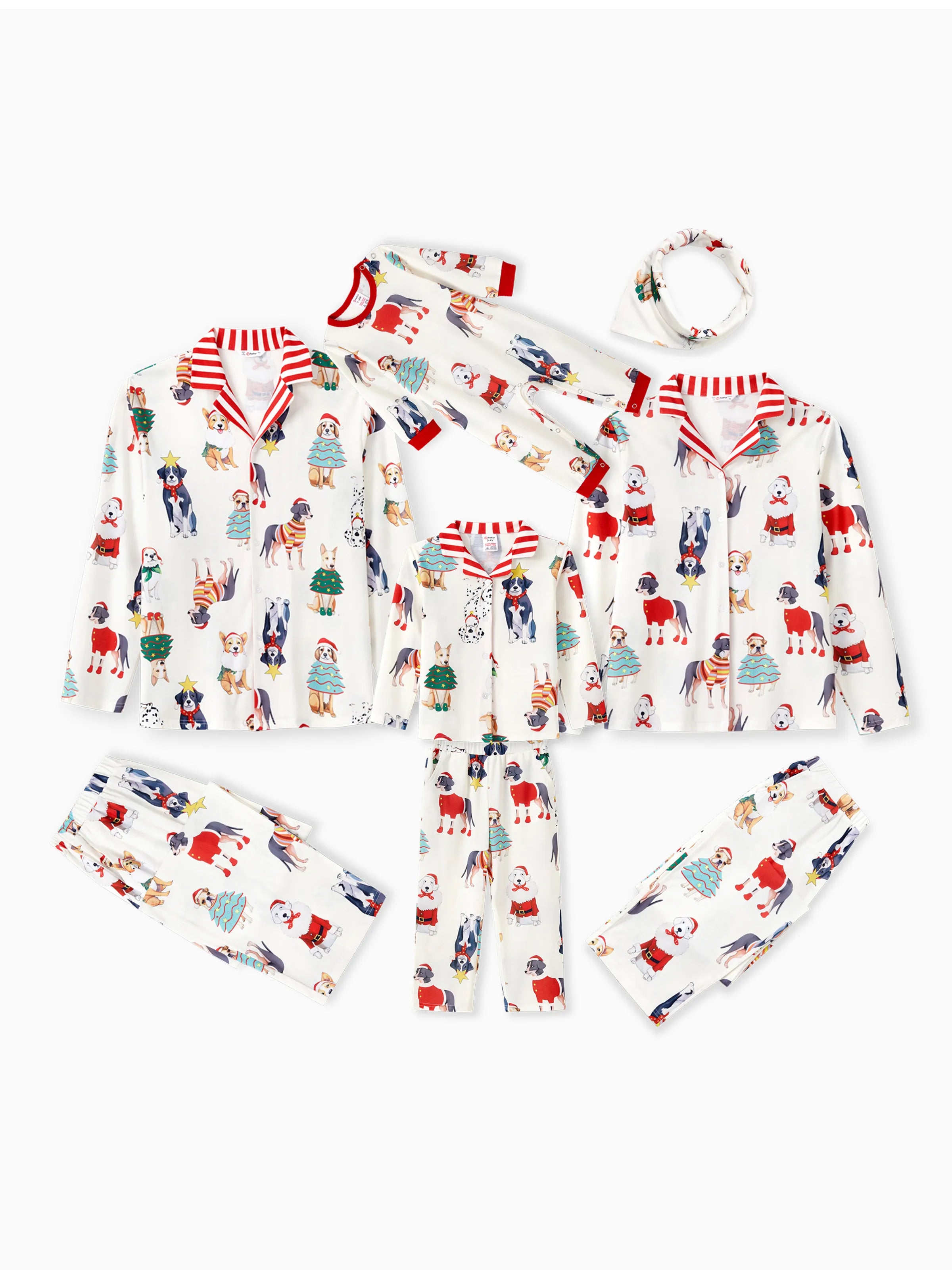 Get matching family Christmas pajamas featuring a festive dog print and bandana. Strengthen your family bond and make memories.