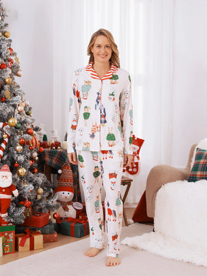 Christmas Pajamas Family Matching Cute Xmas Dog Collared Pajamas Sets with Christmas Socks LightApricot
