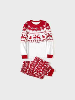 Christmas Reindeer and Snowflake Print Family Matching Pajamas Sets with Christmas Socks Red