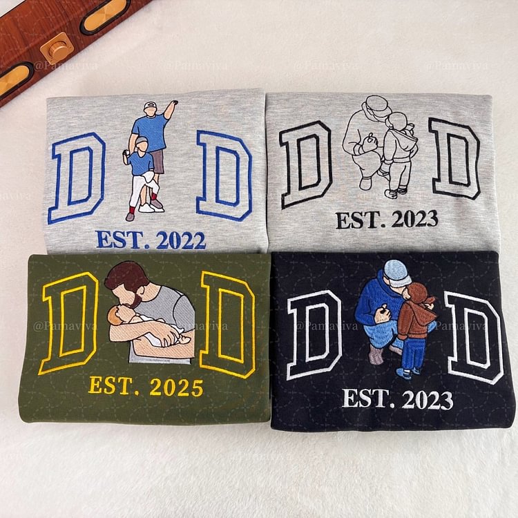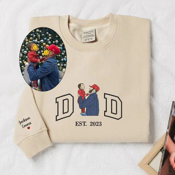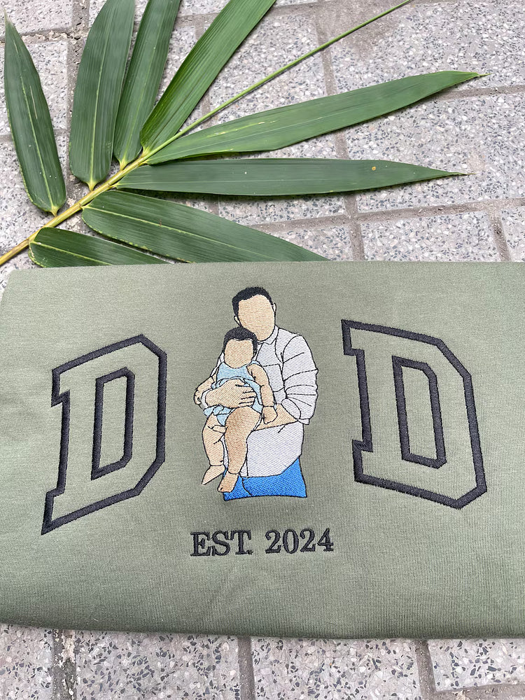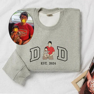 Custom Portrait from Photo Sweatshirt Embroidered Dad,Papa Sweatshirt