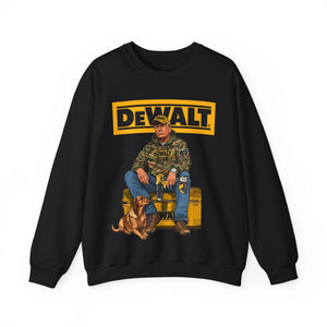 Showcase your love for tools and political humor with the Dewalt Trump Shirt, a distinctive design featuring in an unconventional yet creative depiction. The graphic showcases Trump sitting on a Dewalt toolbox, accompanied by a loyal dog holding a tool. Complete with the iconic Dewalt logo, this shirt merges functionality with a playful nod to the world of construction and politics.