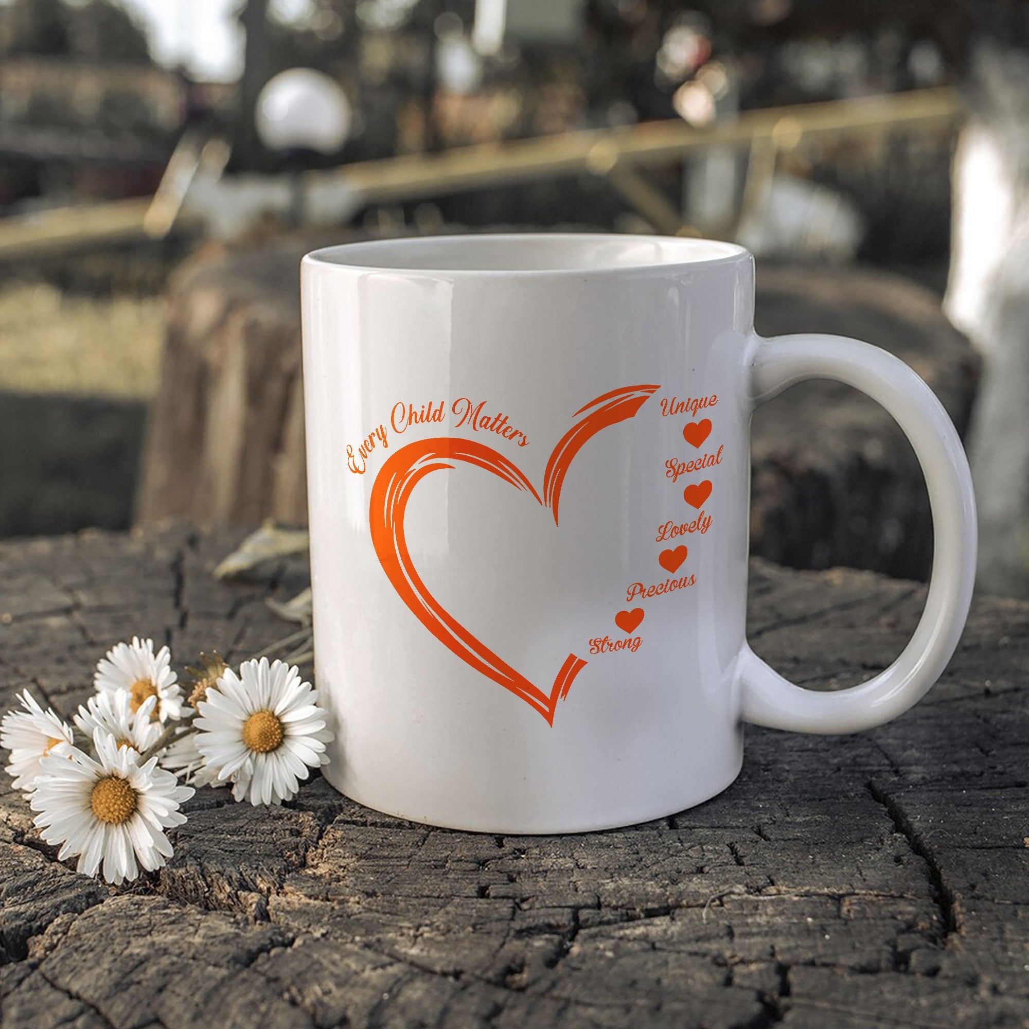 Every Child Matters Orange Heart Ceramic Coffee Mug - Native American Awareness Mug, Support for Indigenous Children