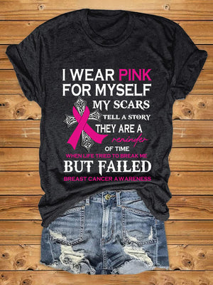 Faith Breast Cancer Awareness I Wear Pink For Myself Print T-Shirt
